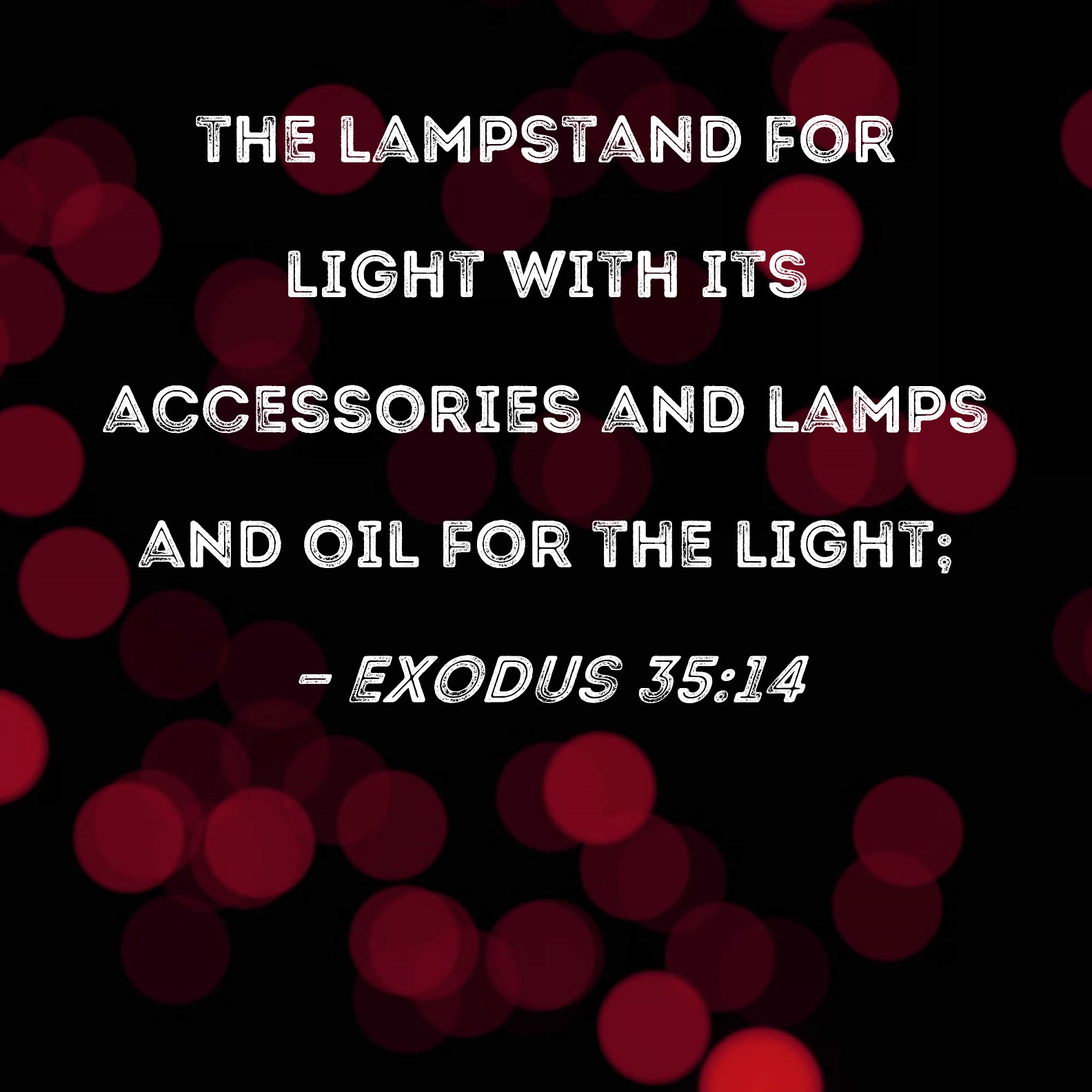 Exodus 35:14 the lampstand for light with its accessories and lamps and oil for the light;