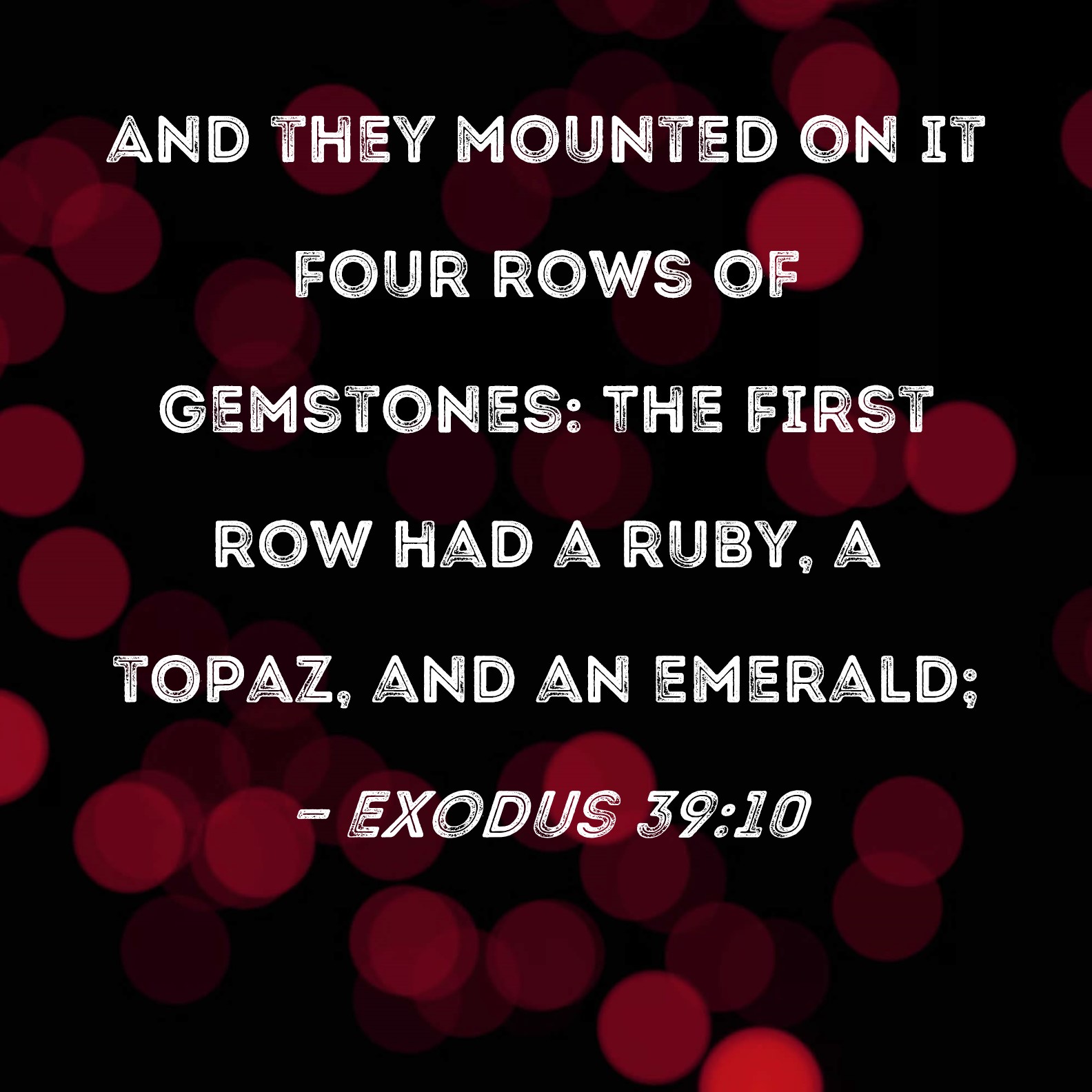 Exodus 39:10 And they mounted on it four rows of gemstones: The first row had a ruby, a topaz, and an emerald;