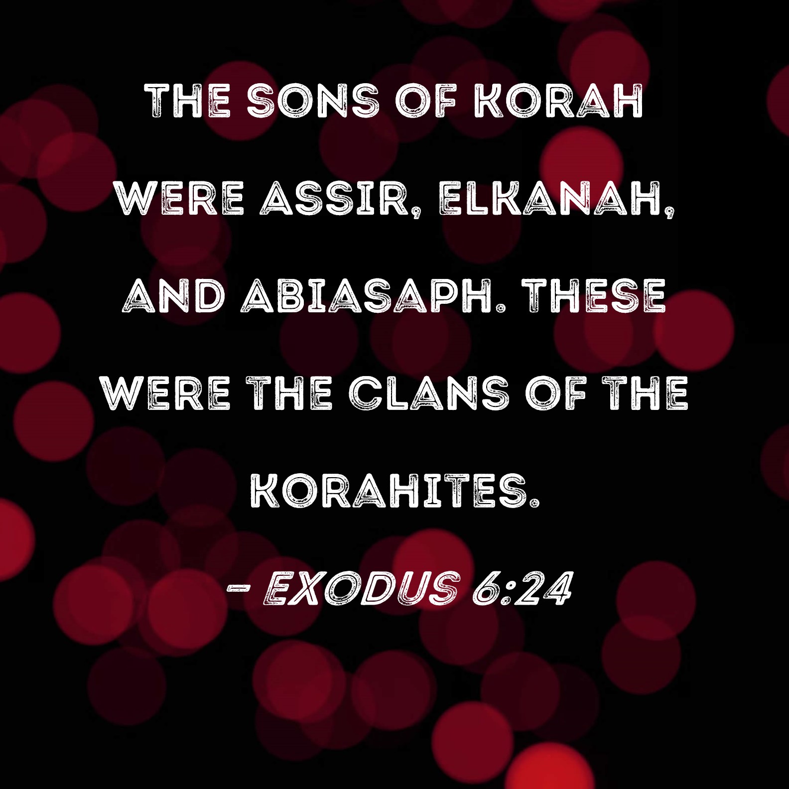 Exodus 6:24 The sons of Korah were Assir, Elkanah, and Abiasaph. These were the clans of the Korahites.
