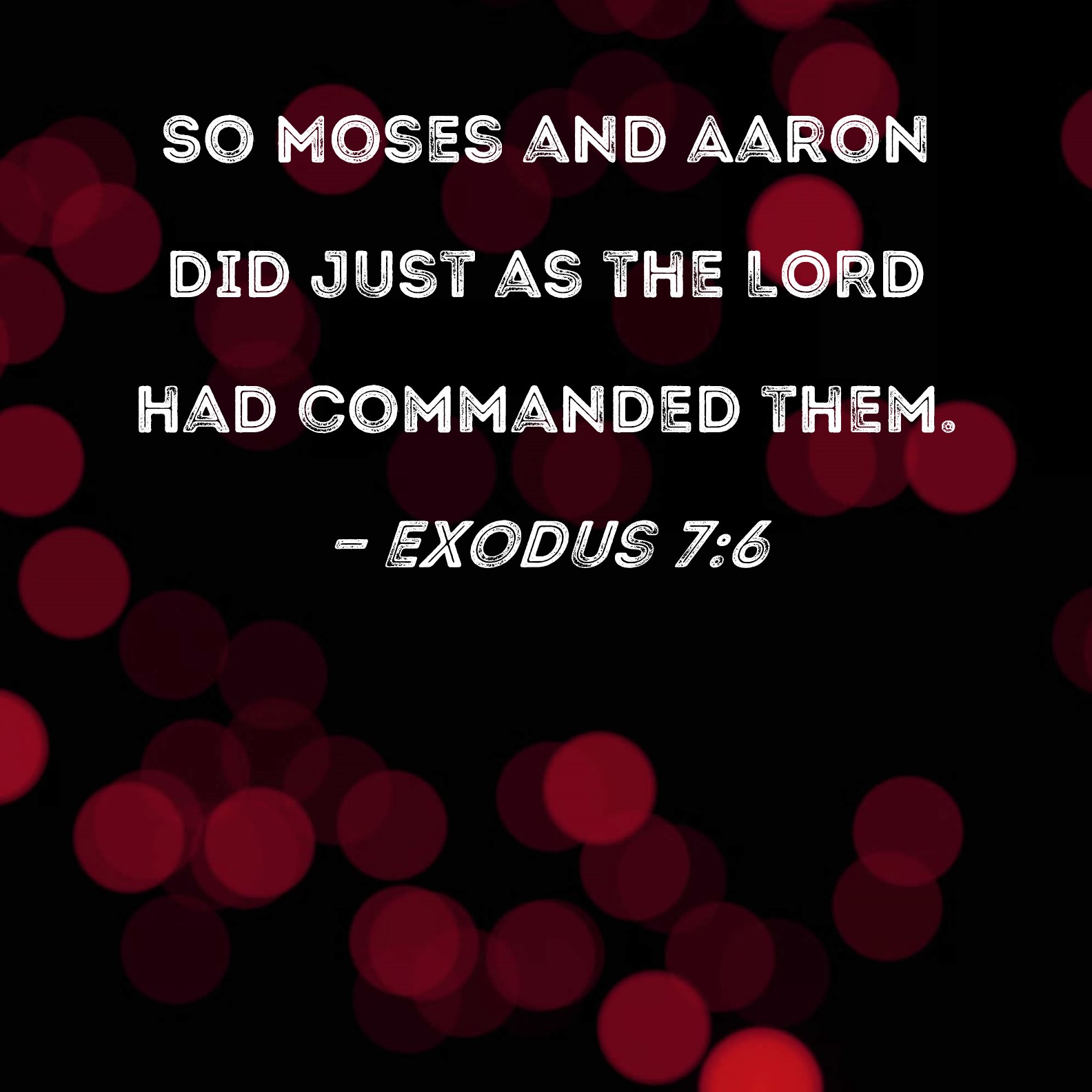 Exodus 7:6 So Moses and Aaron did just as the LORD had commanded them.