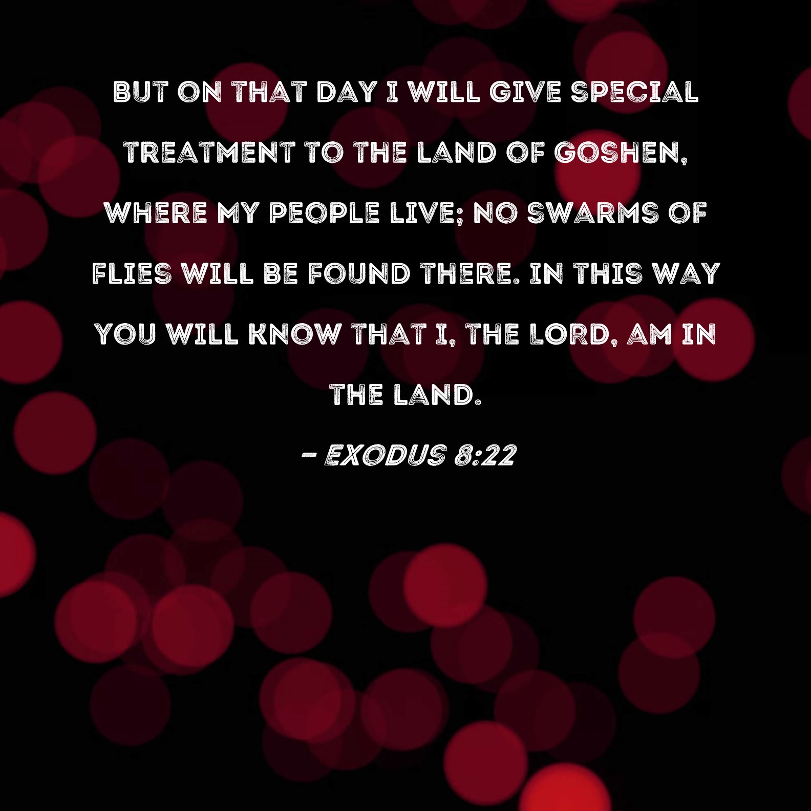 Exodus 8:22 But on that day I will give special treatment to the land of Goshen, where My people live; no swarms of flies will be found there. In this way you will know that I, the LORD, am in the land.
