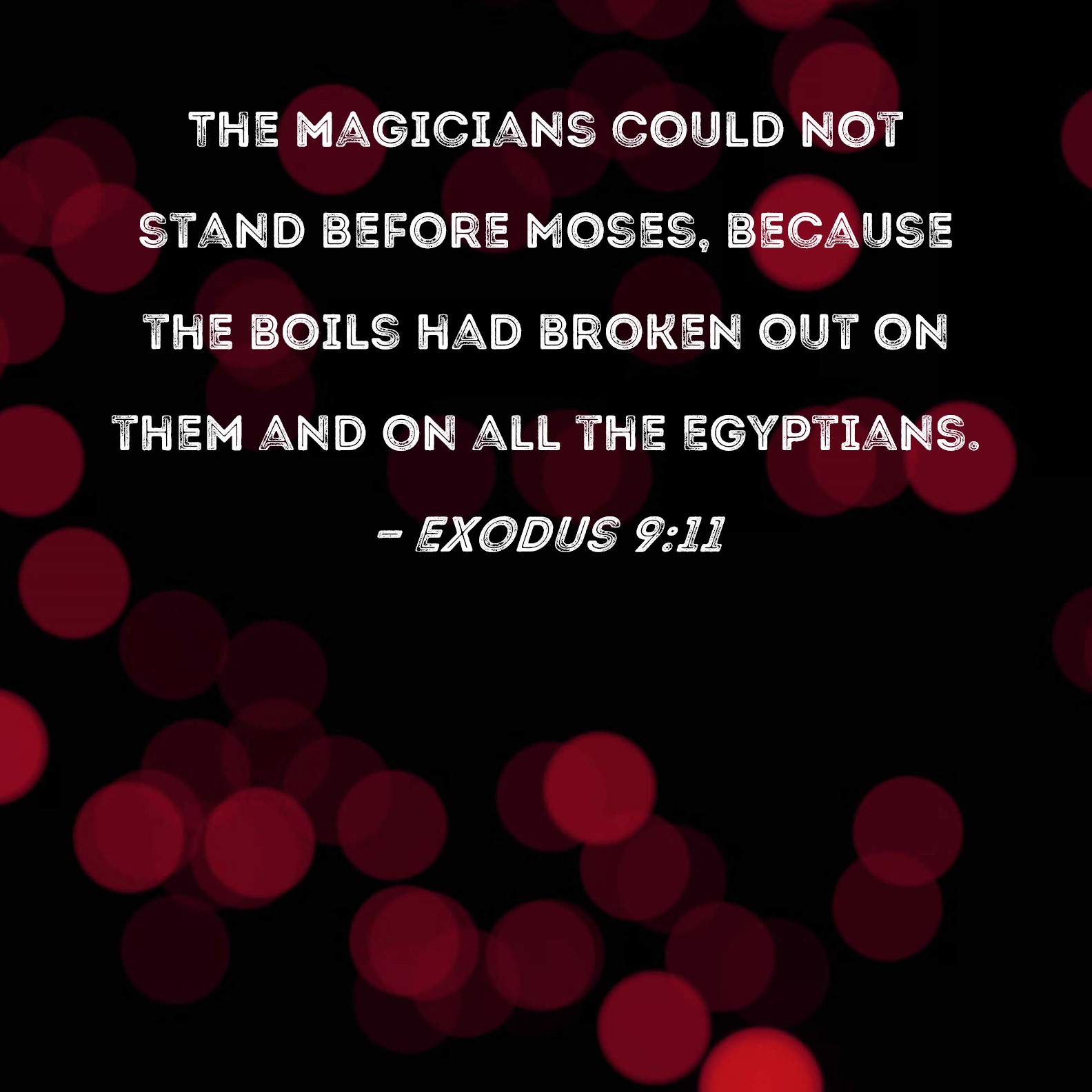 Exodus 9:11 The magicians could not stand before Moses, because the boils had broken out on them and on all the Egyptians.