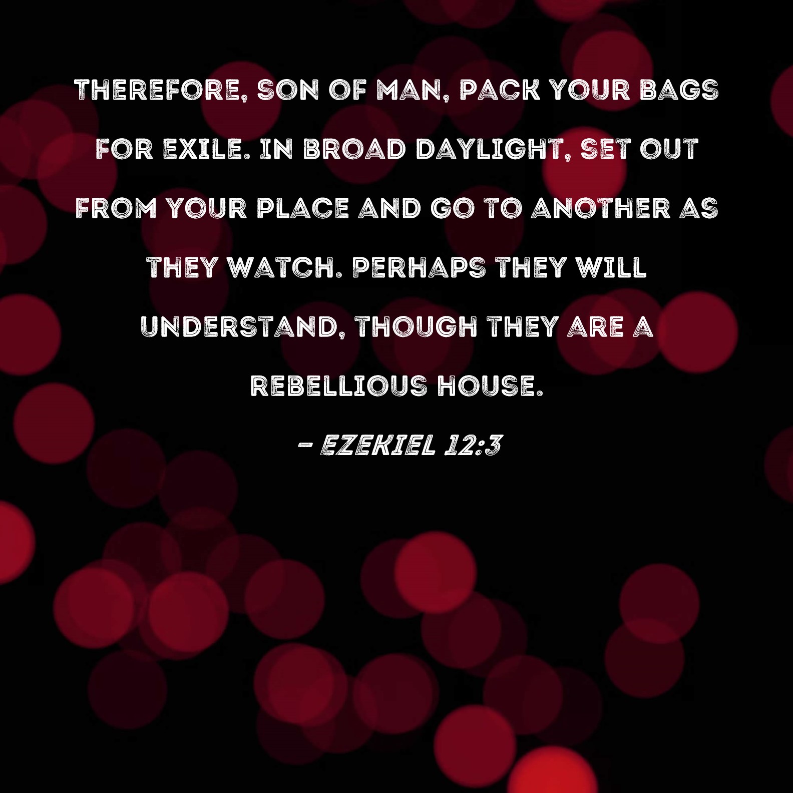 Ezekiel 12:3 Therefore, son of man, pack your bags for exile. In broad daylight, set out from your place and go to another as they watch. Perhaps they will understand, though they are a rebellious house.