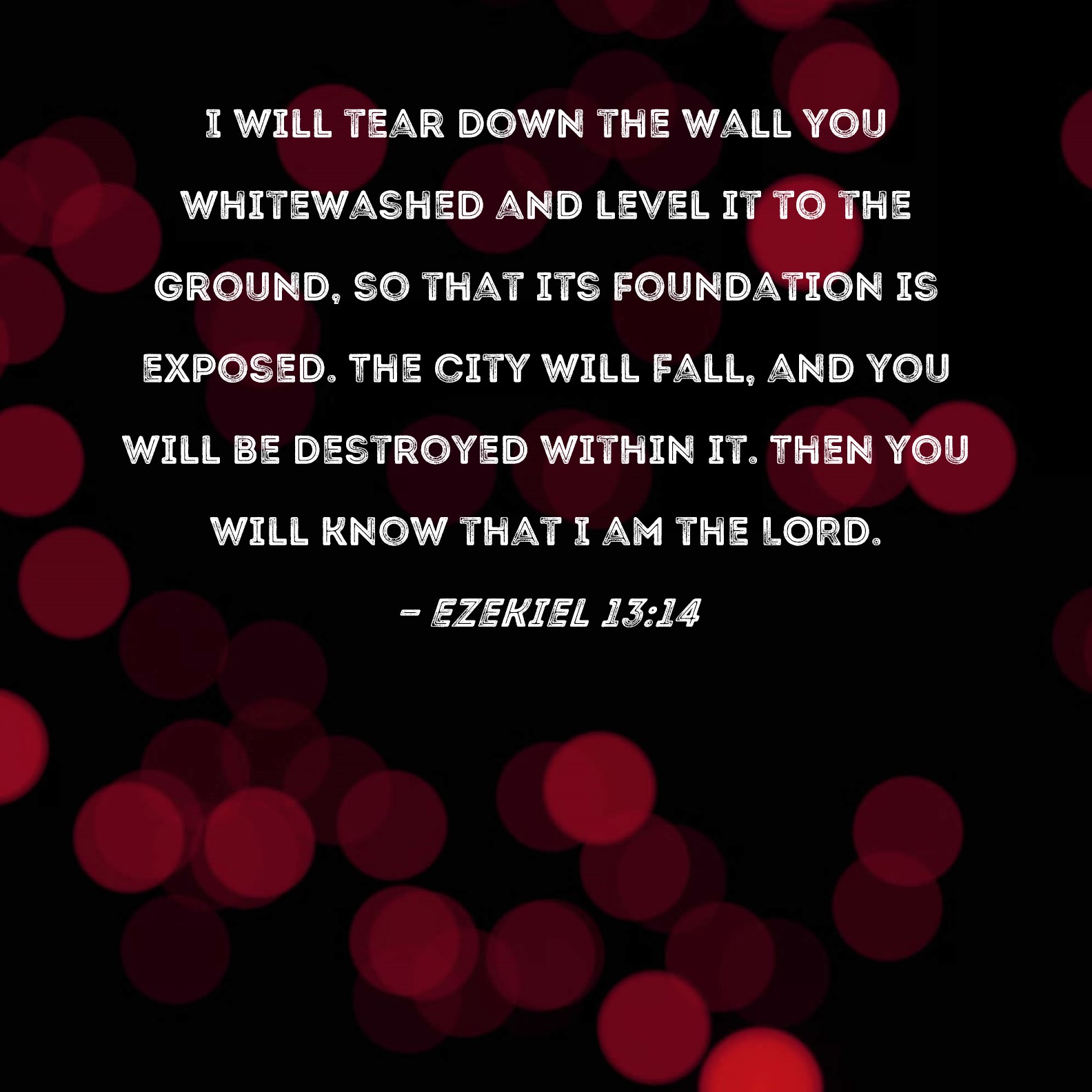Ezekiel 13:14 I will tear down the wall you whitewashed and level it to the ground, so that its foundation is exposed. The city will fall, and you will be destroyed within it. Then you will know that I am the LORD.