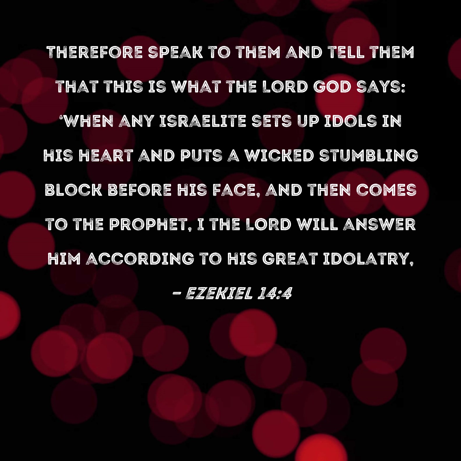 Therefore speak to them and tell them, ‘The Lord Yahweh says: “Every man of the house of Israel who takes his idols into his heart and puts the stumbling block of his iniquity before his face then comes to the prophet, I Yahweh will answer him there according to the multitude of his idols,