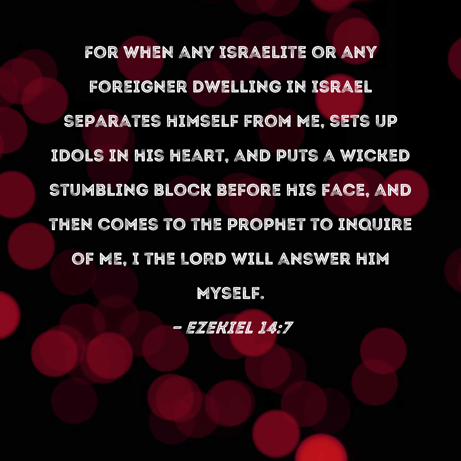 Ezekiel 14:7 For when any Israelite or any foreigner dwelling in Israel separates himself from Me, sets up idols in his heart, and puts a wicked stumbling block before his face, and then comes to the prophet to inquire of Me, I the LORD will answer him Myself.