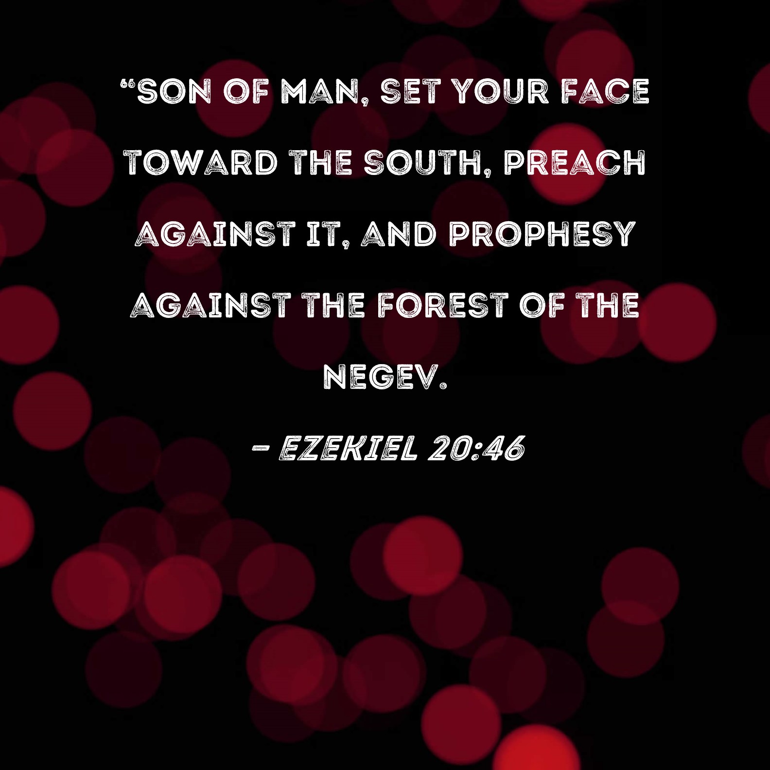 Ezekiel 20:46 "Son of man, set your face toward the south, preach against it, and prophesy against the forest of the Negev.