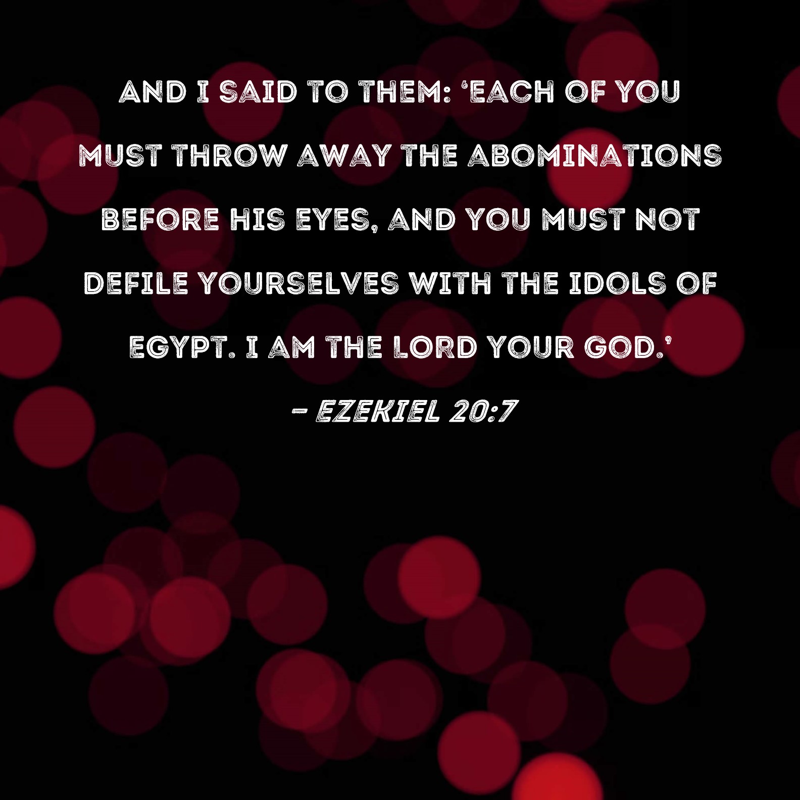 Ezekiel 20:7 And I said to them: 'Each of you must throw away the abominations before his eyes, and you must not defile yourselves with the idols of Egypt. I am the LORD your God.'