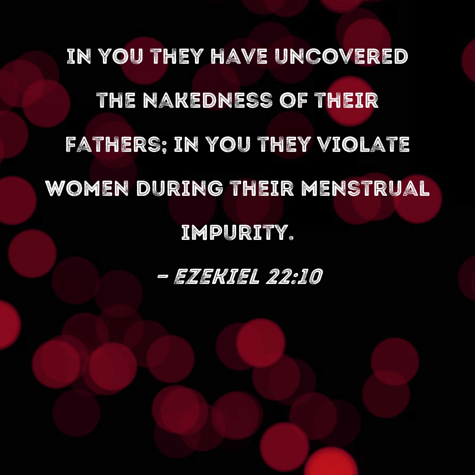 Ezekiel 22:10 In you they have uncovered the nakedness of their fathers; in you they violate women during their menstrual impurity.