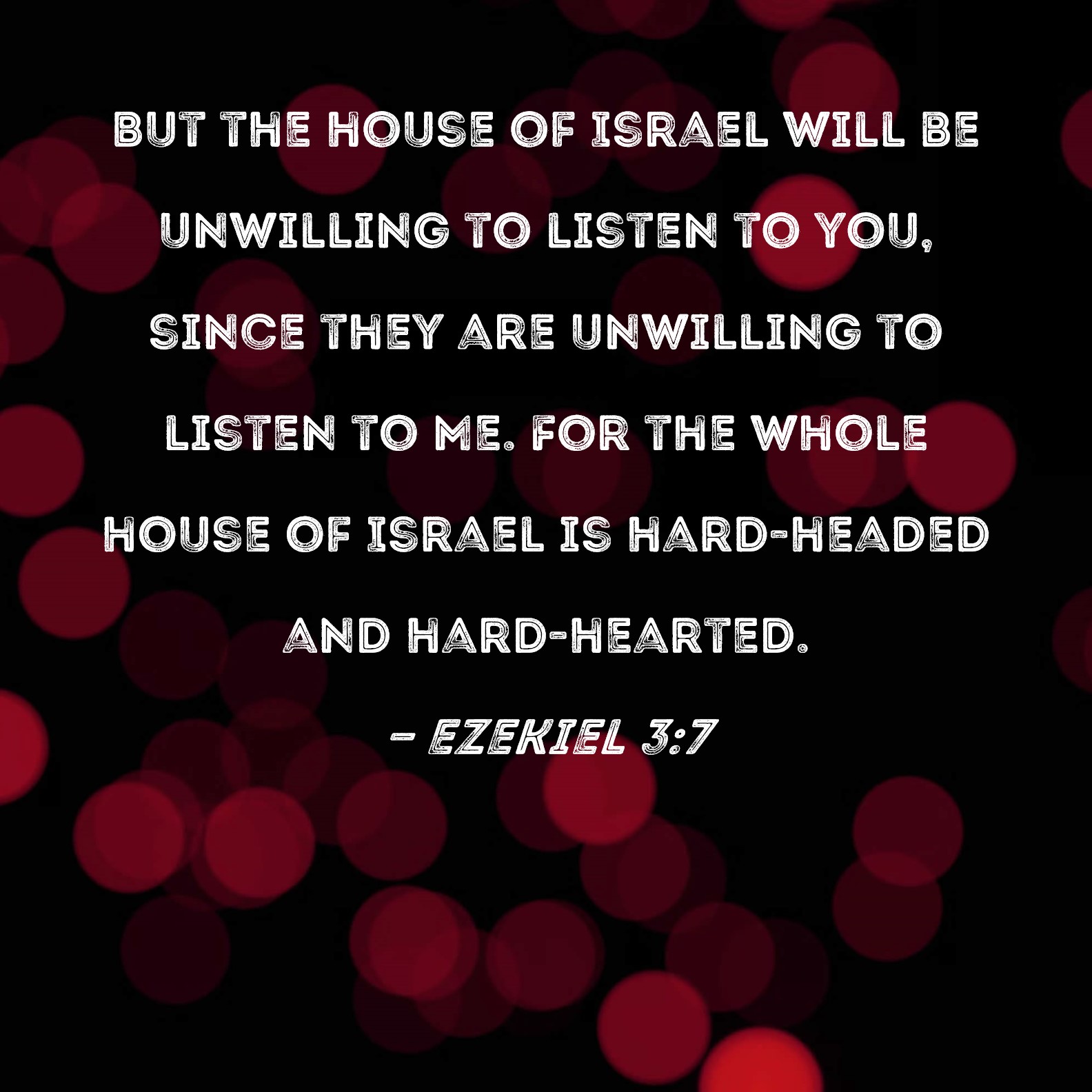 Ezekiel 3:7 But the house of Israel will be unwilling to listen to you, since they are unwilling to listen to Me. For the whole house of Israel is hard-headed and hard-hearted.
