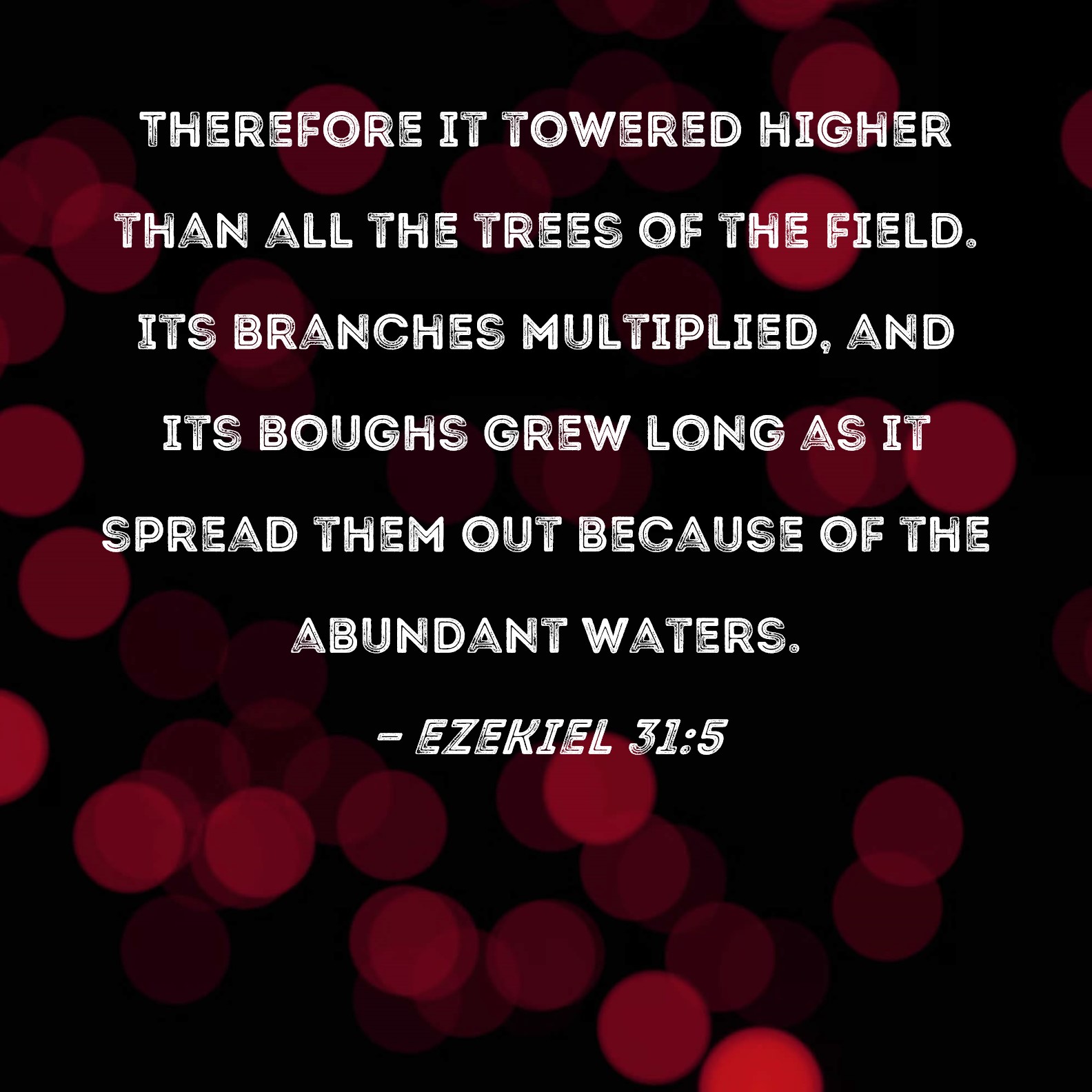 Ezekiel 31:5 Therefore it towered higher than all the trees of the field. Its branches multiplied, and its boughs grew long as it spread them out because of the abundant waters.