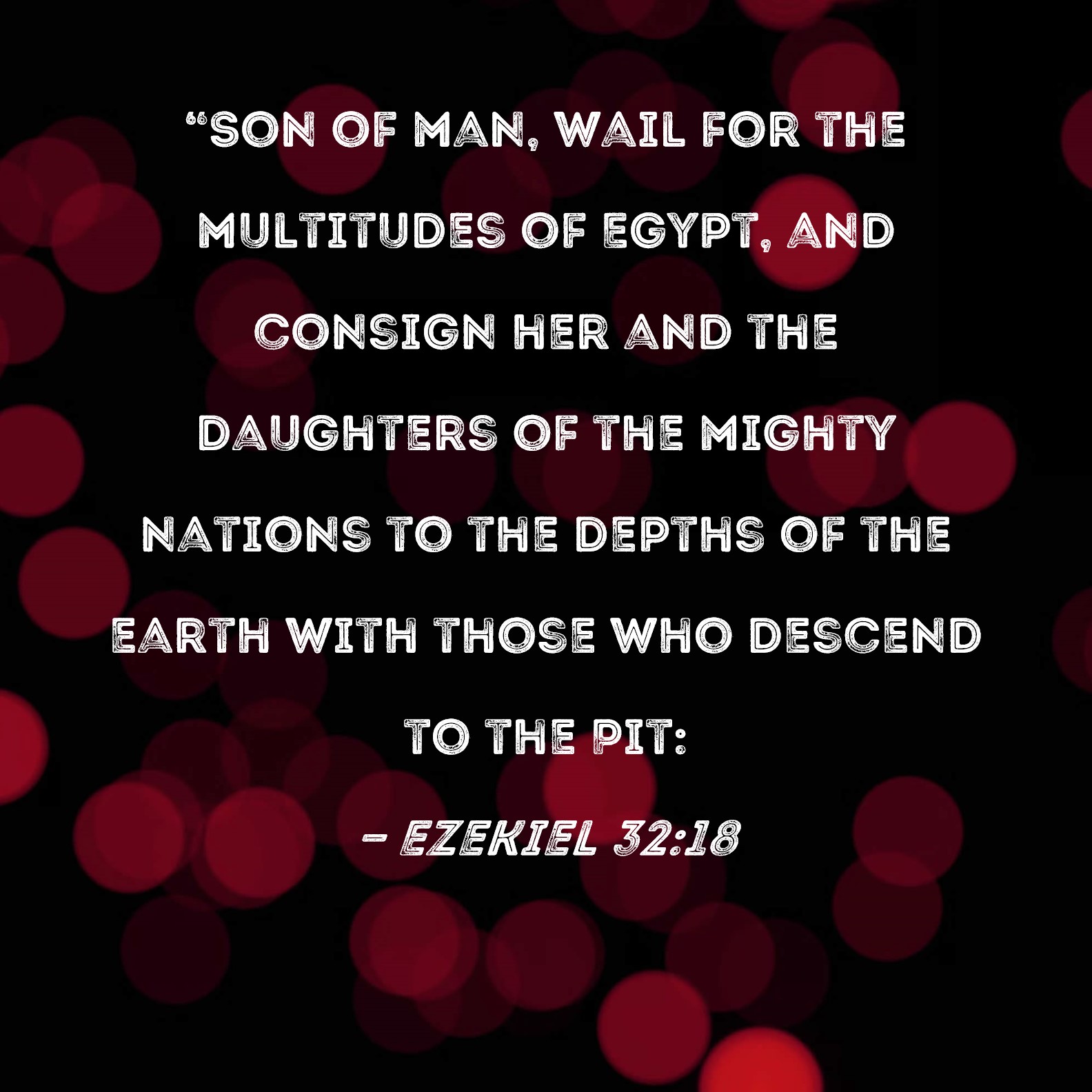 Ezekiel 32:18 "Son of man, wail for the multitudes of Egypt, and consign her and the daughters of the mighty nations to the depths of the earth with those who descend to the Pit: