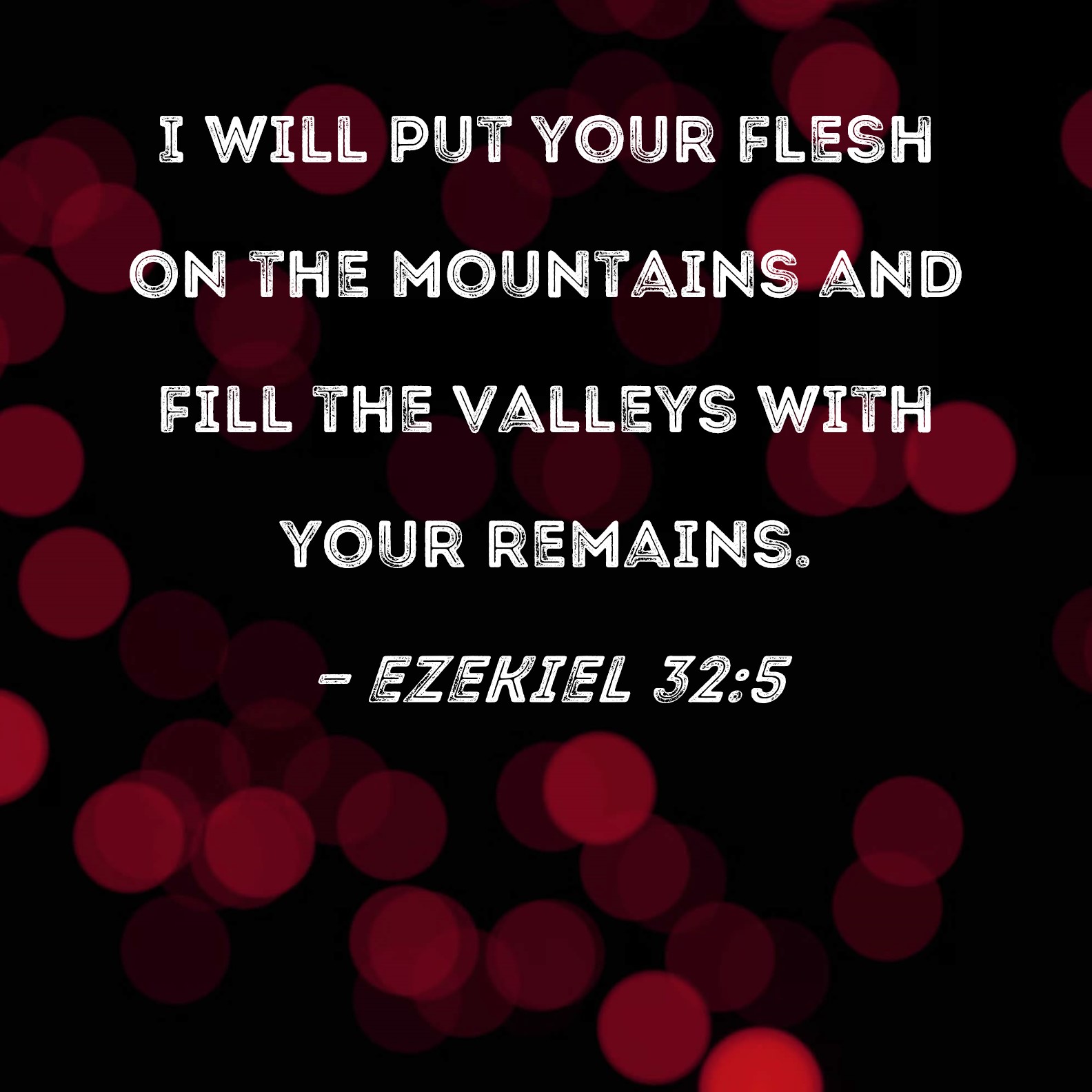 Ezekiel 32:5 I will put your flesh on the mountains and fill the valleys with your remains.