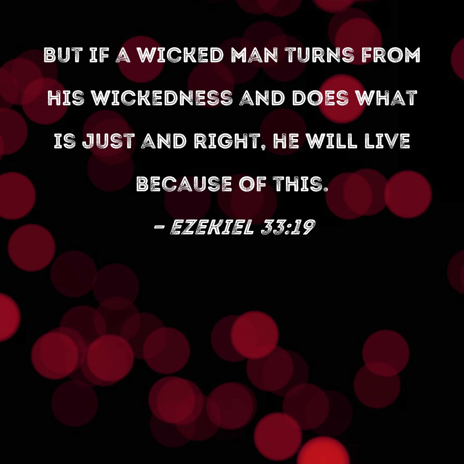 Ezekiel 33:19 But if a wicked man turns from his wickedness and does what is just and right, he will live because of this.