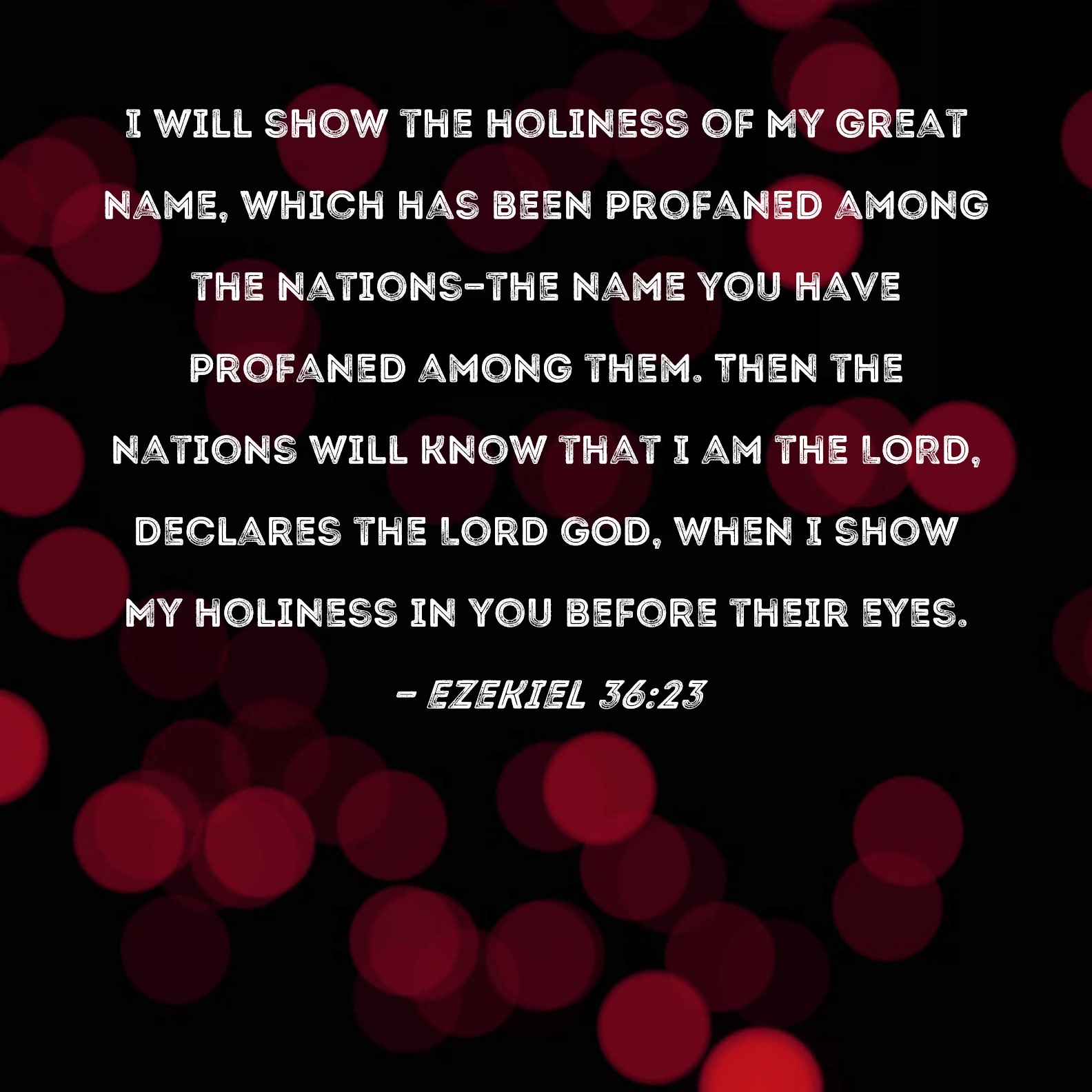 Ezekiel 36:23 I will show the holiness of My great name, which has been profaned among the nations--the name you have profaned among them. Then the nations will know that I am the LORD, declares the Lord GOD, when I show My holiness in you before their eyes.