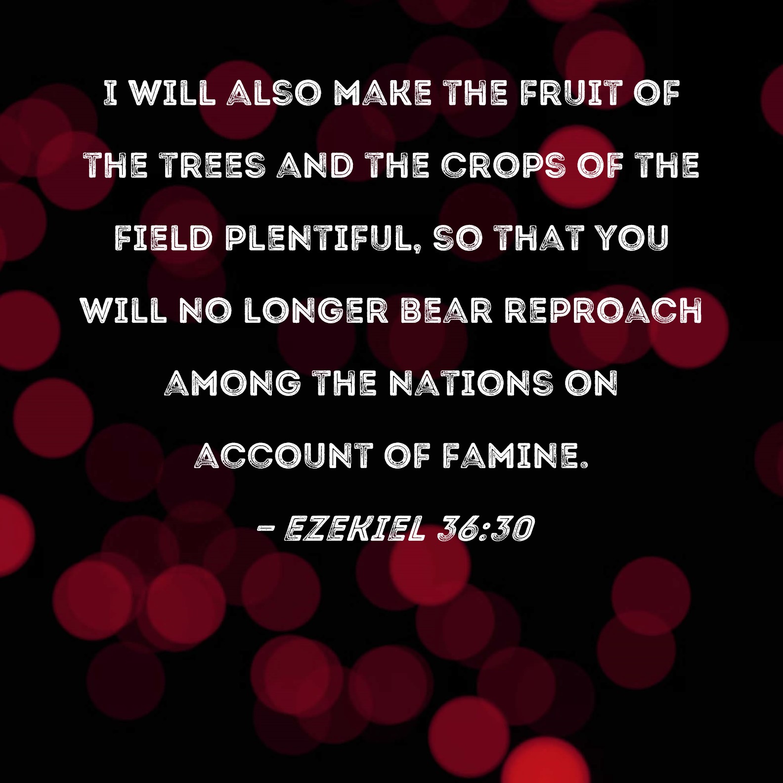 Ezekiel 36:30 I will also make the fruit of the trees and the crops of the field plentiful, so that you will no longer bear reproach among the nations on account of famine.