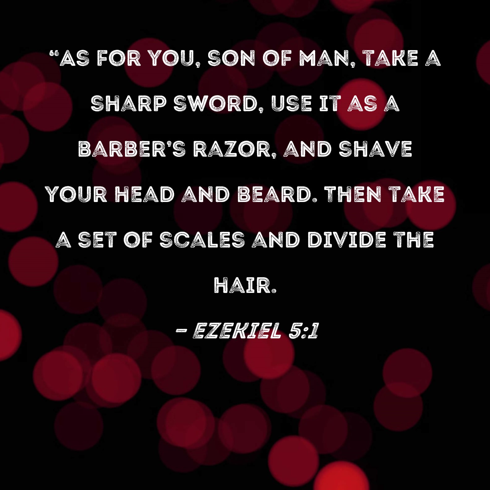 Ezekiel 5:1 "As for you, son of man, take a sharp sword, use it as a barber's razor, and shave your head and beard. Then take a set of scales and divide the hair.