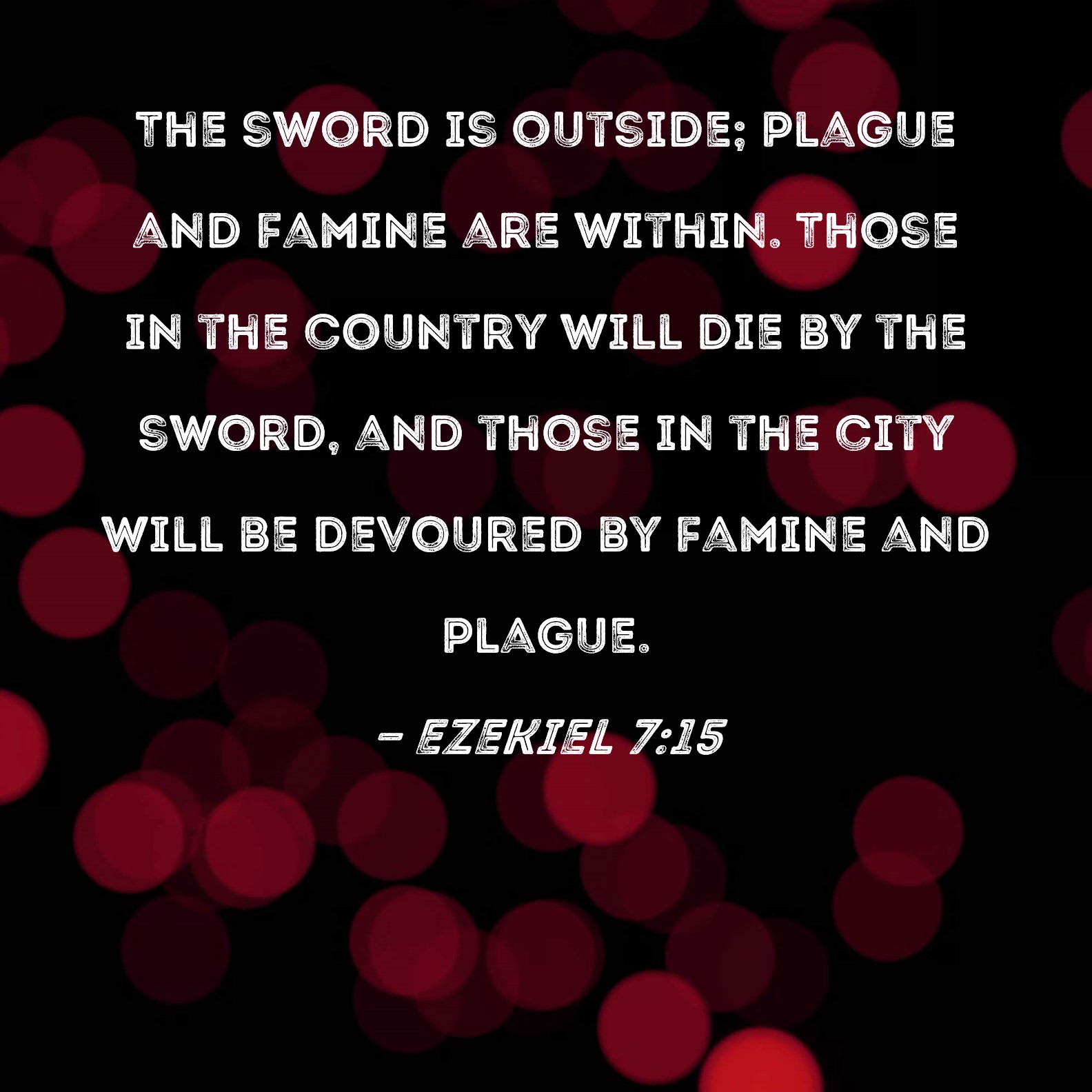 Ezekiel 7:15 The sword is outside; plague and famine are within. Those in the country will die by the sword, and those in the city will be devoured by famine and plague.