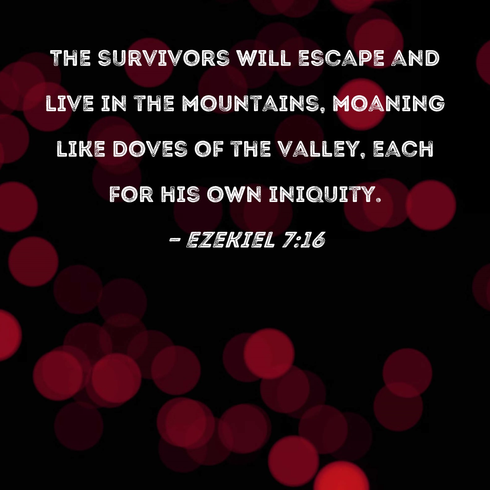 Ezekiel 7:16 The survivors will escape and live in the mountains, moaning like doves of the valley, each for his own iniquity.