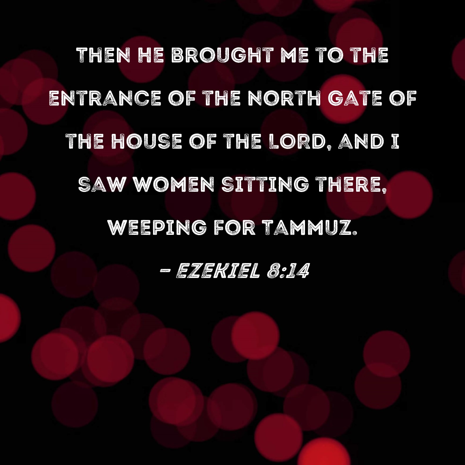 WBT:  Then he brought me to the door of the gate of the LORD'S house which was towards the north; and behold, there sat women weeping for Tammuz.