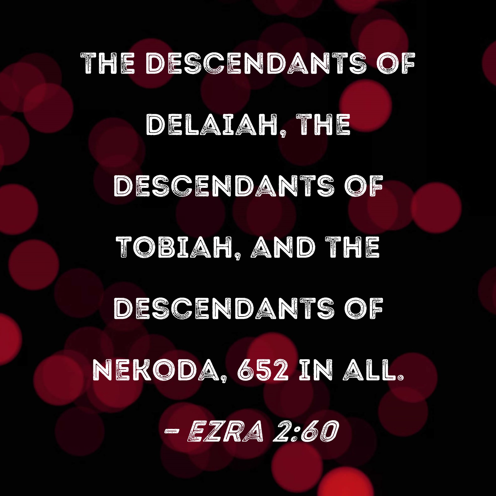 Ezra 2:60 the descendants of Delaiah, the descendants of Tobiah, and the descendants of Nekoda, 652 in all.