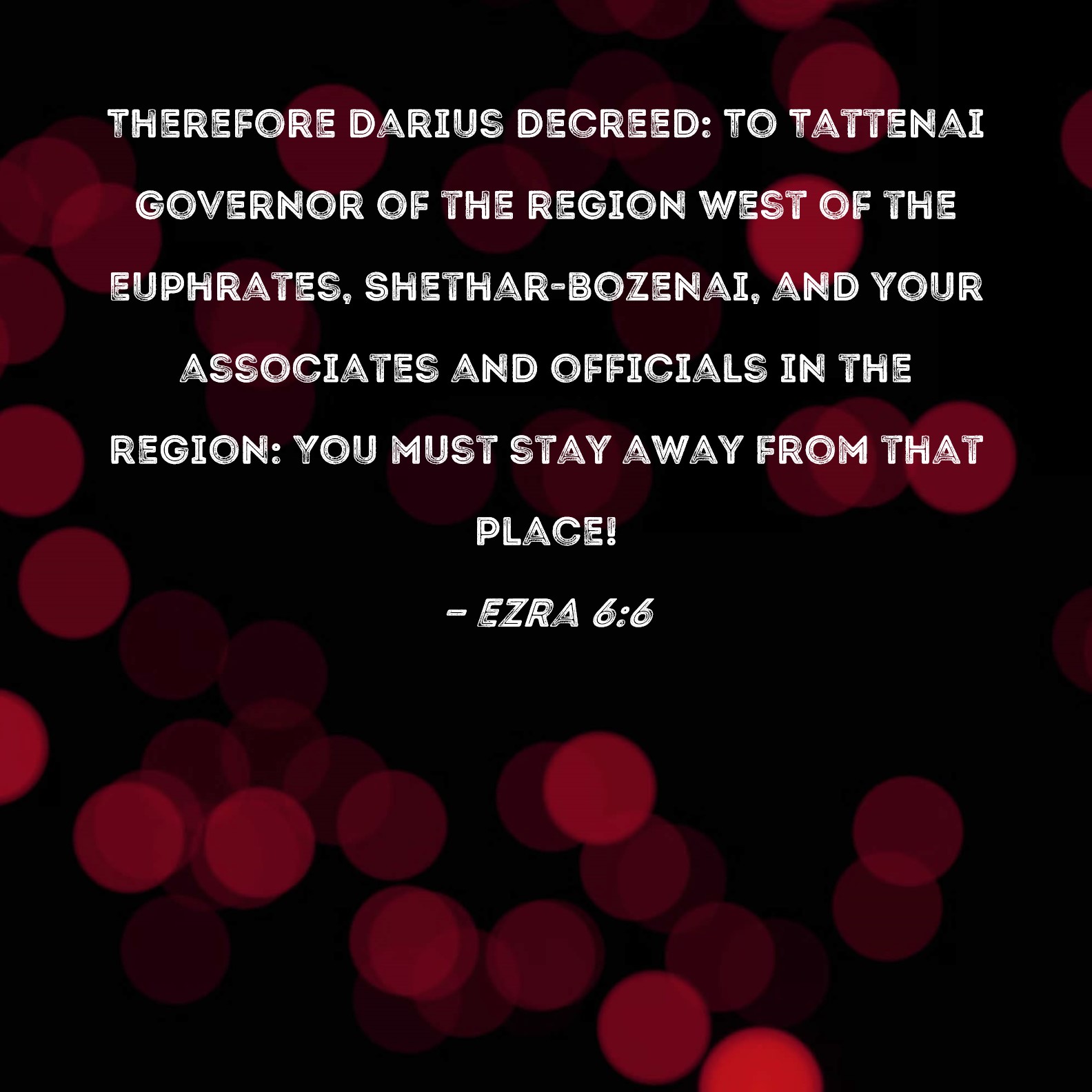 Ezra 6:6 Therefore Darius decreed: To Tattenai governor of the region west of the Euphrates, Shethar-bozenai, and your associates and officials in the region: You must stay away from that place!