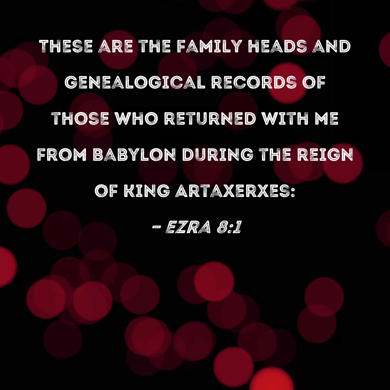 Ezra 8:1 These are the family heads and genealogical records of those who returned with me from Babylon during the reign of King Artaxerxes: