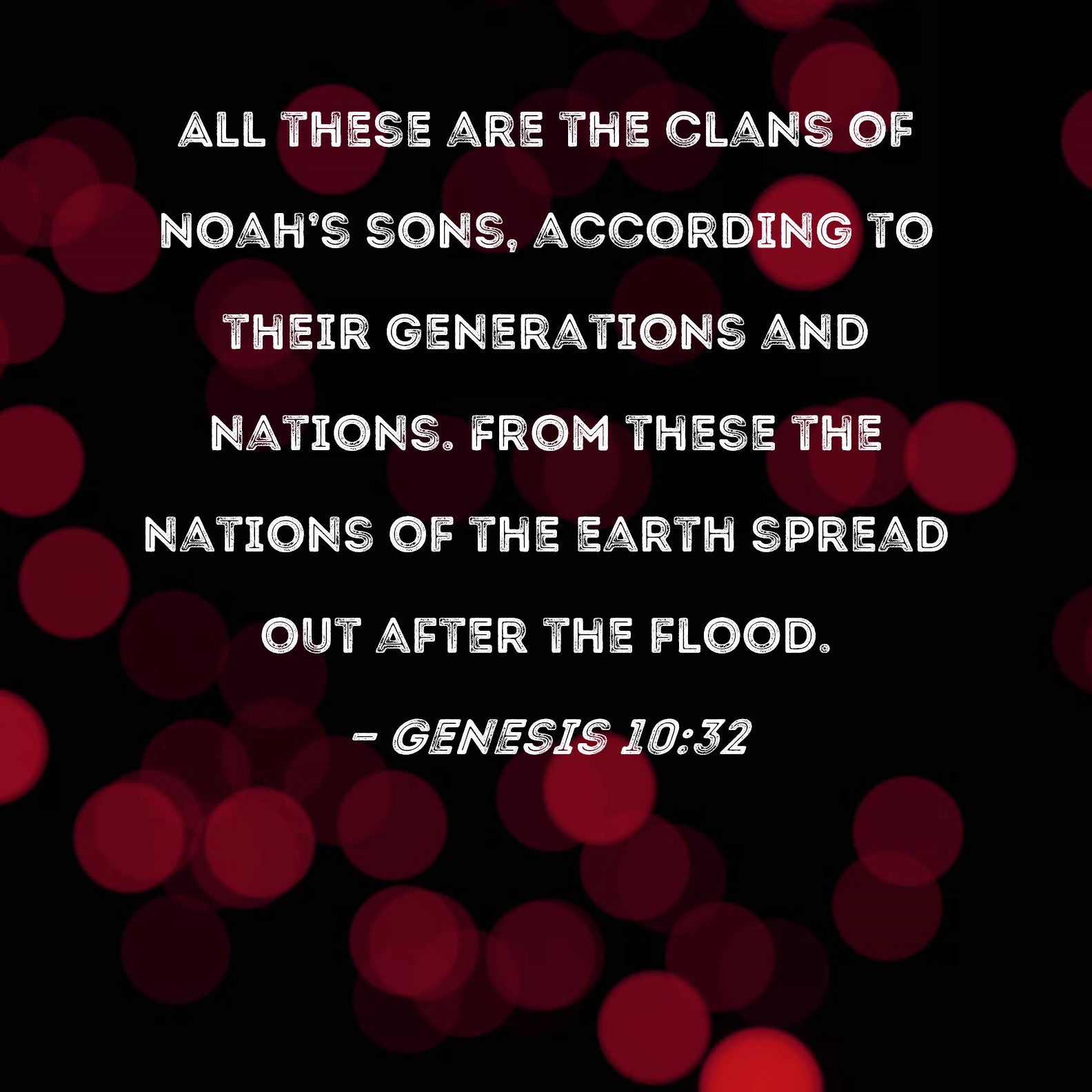 Genesis 10:32 All these are the clans of Noah's sons, according to their generations and nations. From these the nations of the earth spread out after the flood.
