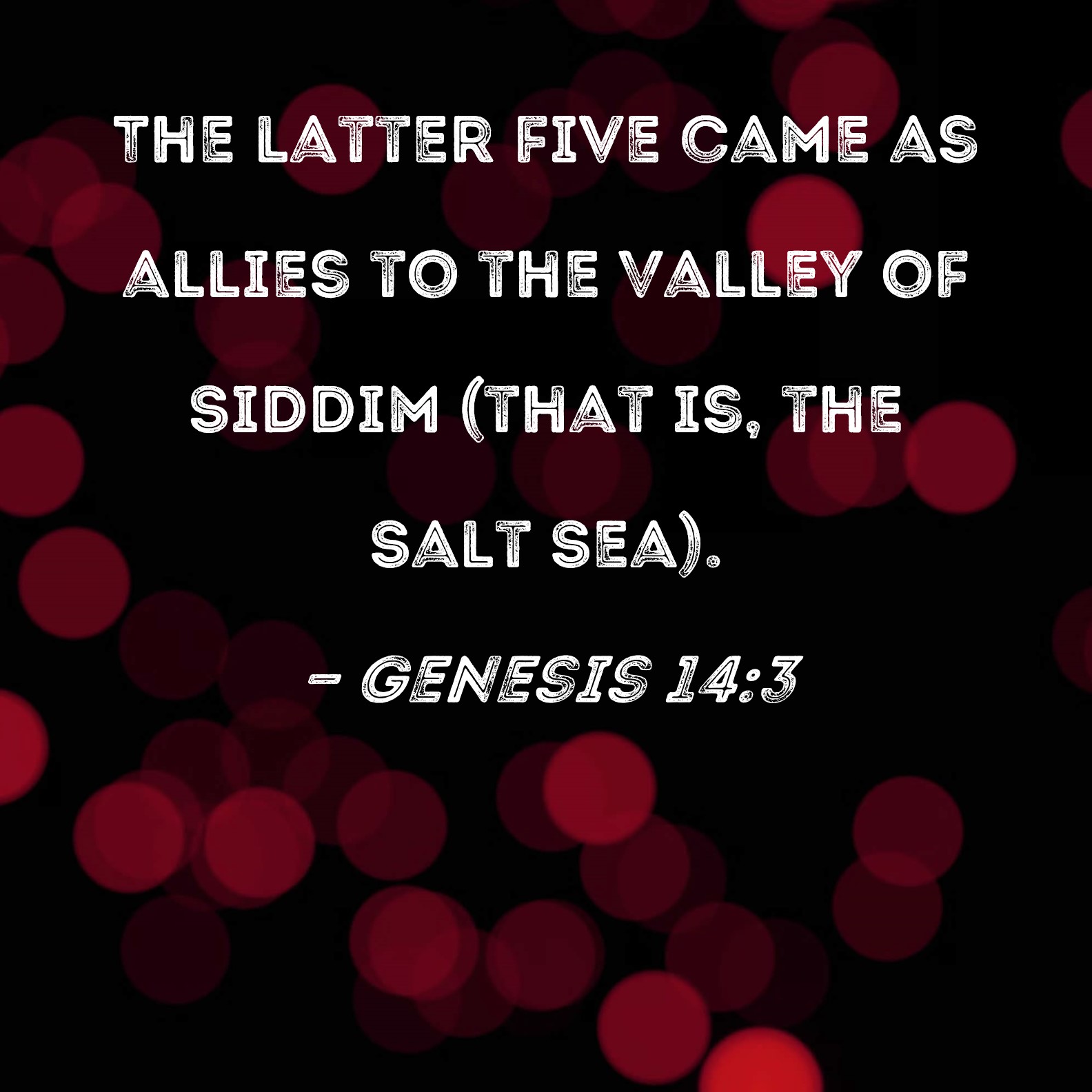 Genesis 14:3 The latter five came as allies to the Valley of Siddim (that is, the Salt Sea).