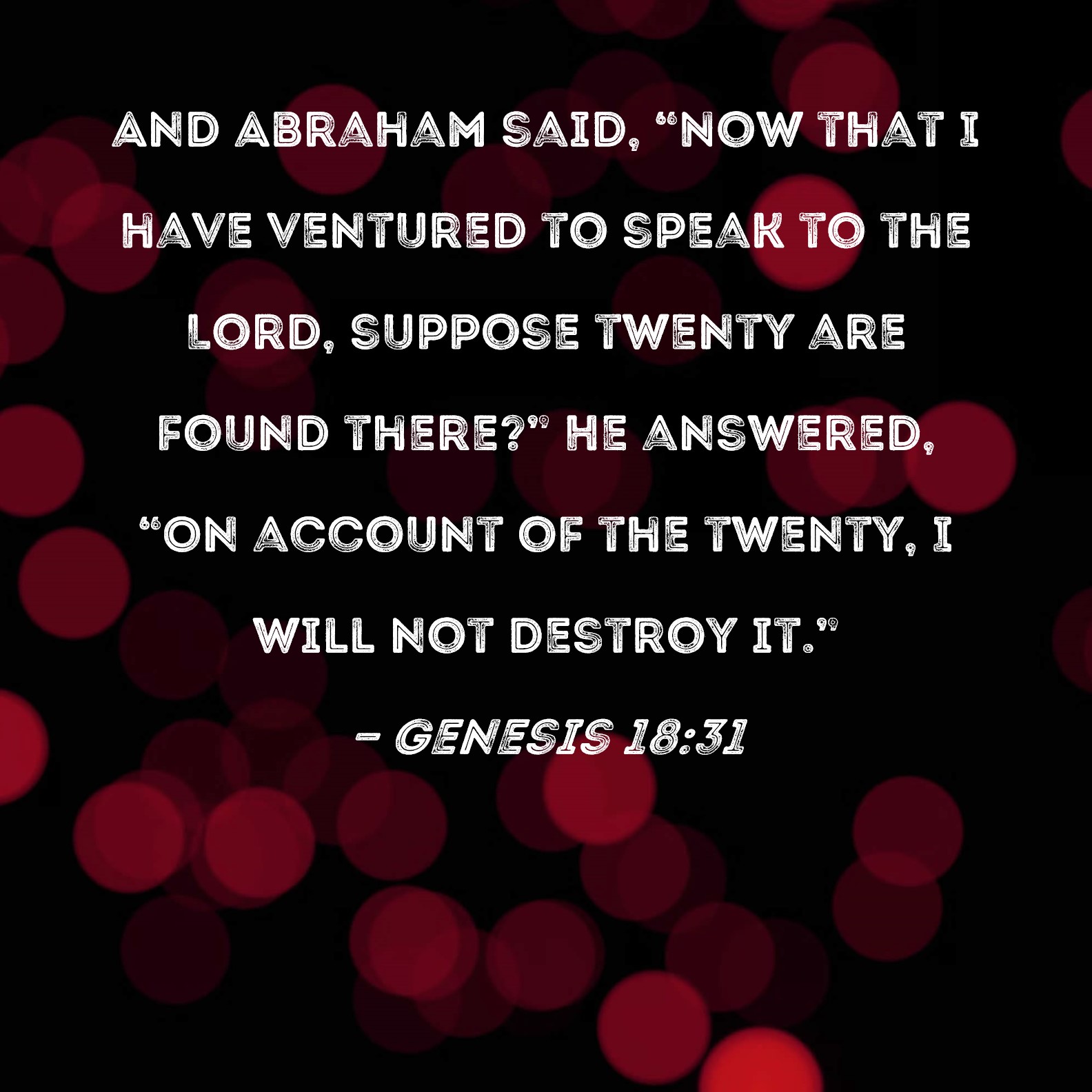 Genesis 18:31 And Abraham said, "Now that I have ventured to speak to the Lord, suppose twenty are found there?" He answered, "On account of the twenty, I will not destroy it."