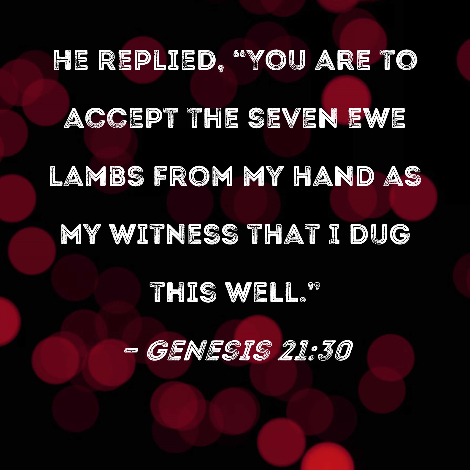Genesis 21:30 He replied, "You are to accept the seven ewe lambs from my hand as my witness that I dug this well."