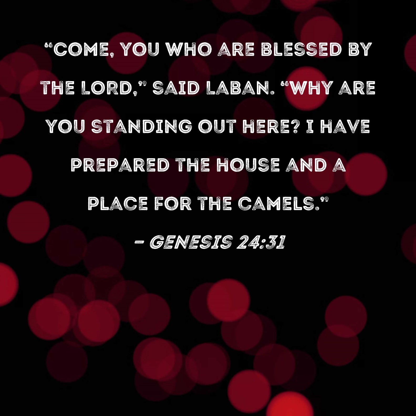 Genesis 24:31 "Come, you who are blessed by the LORD," said Laban. "Why are you standing out here? I have prepared the house and a place for the camels."
