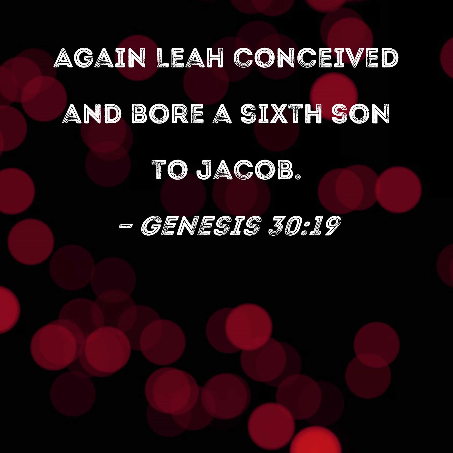 Genesis 30:19 Again Leah conceived and bore a sixth son to Jacob.