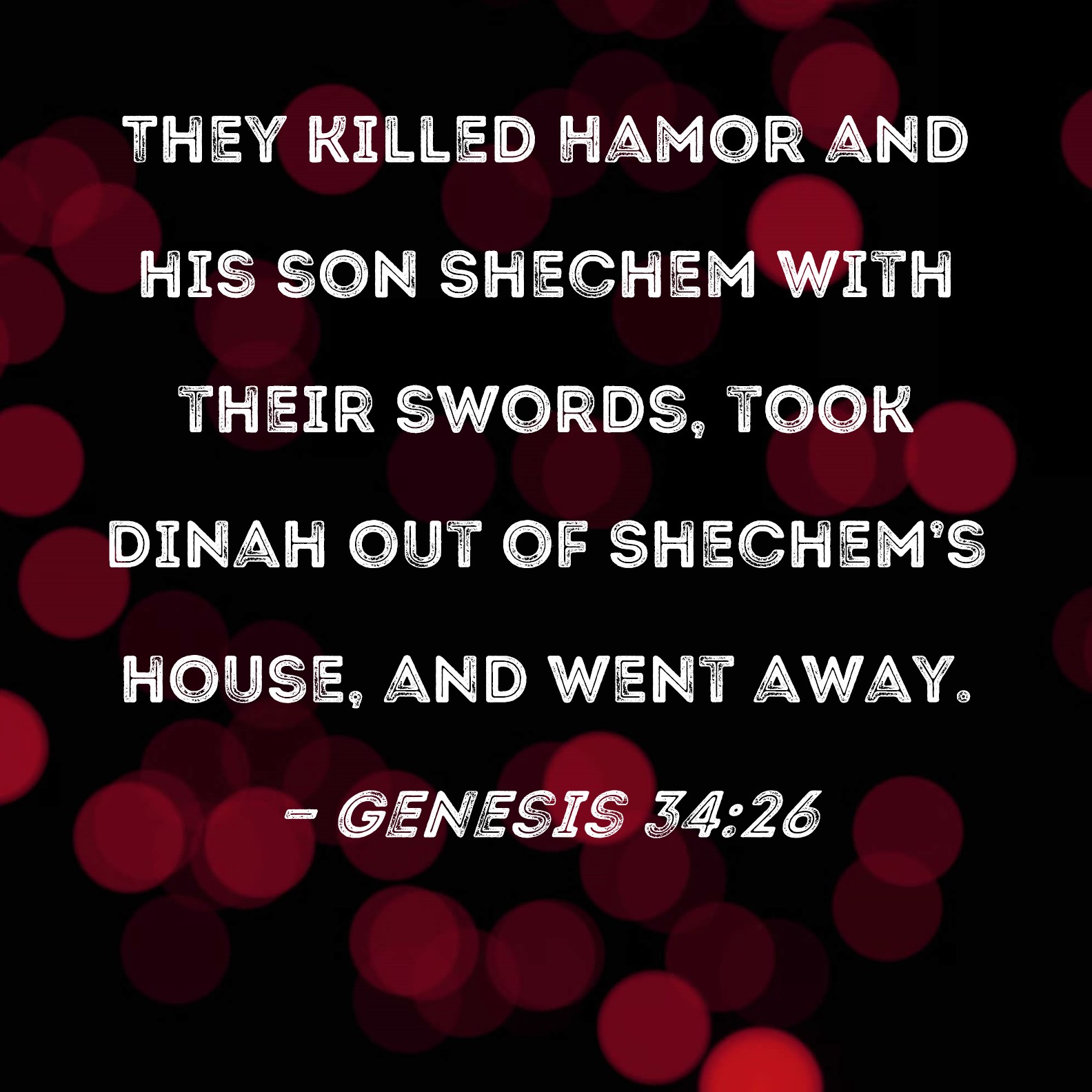 Genesis 34:26 They killed Hamor and his son Shechem with their swords, took Dinah out of Shechem's house, and went away.