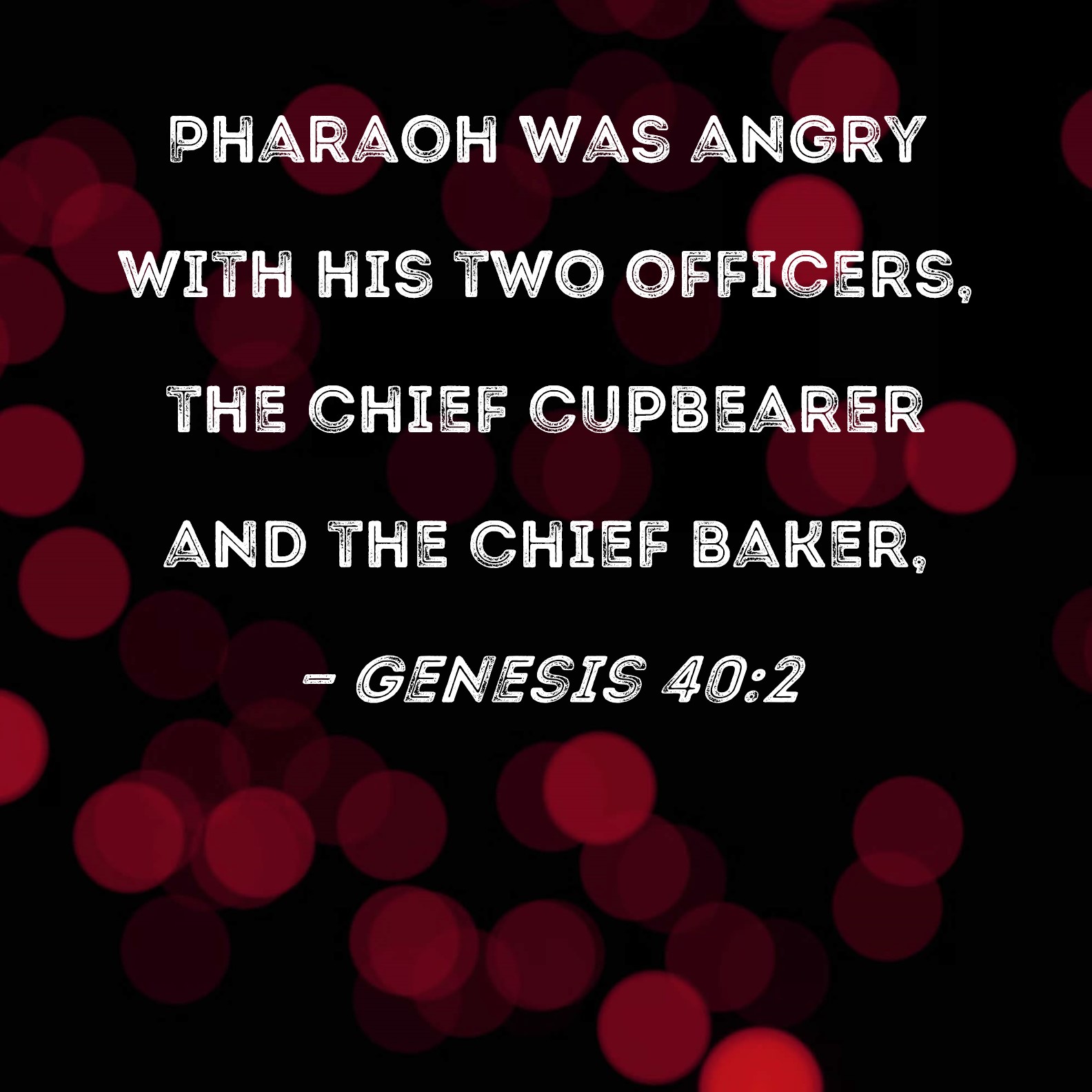 Genesis 40:2 Pharaoh was angry with his two officers, the chief cupbearer and the chief baker,