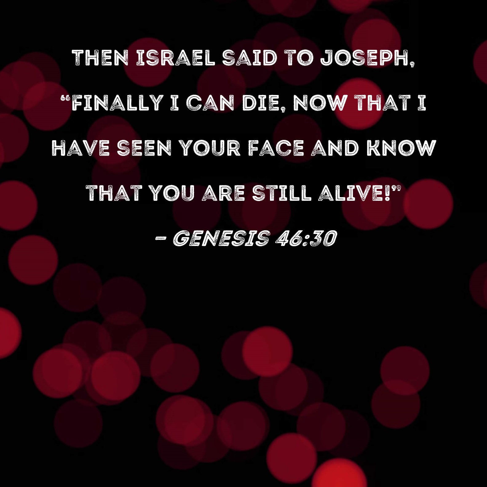 Genesis 46:30 Then Israel said to Joseph, "Finally I can die, now that I have seen your face and know that you are still alive!"