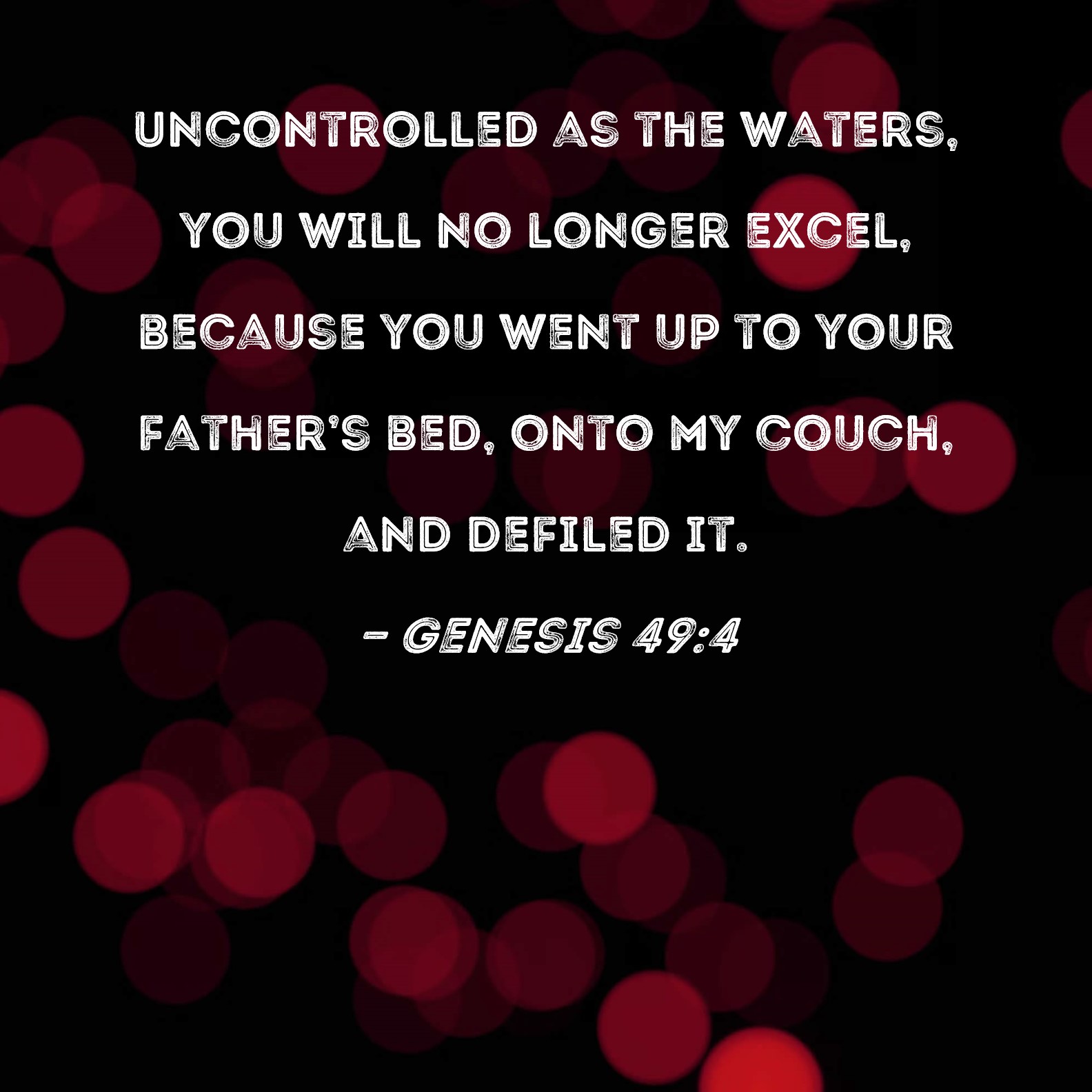 Genesis 49:4 Uncontrolled as the waters, you will no longer excel, because you went up to your father's bed, onto my couch, and defiled it.