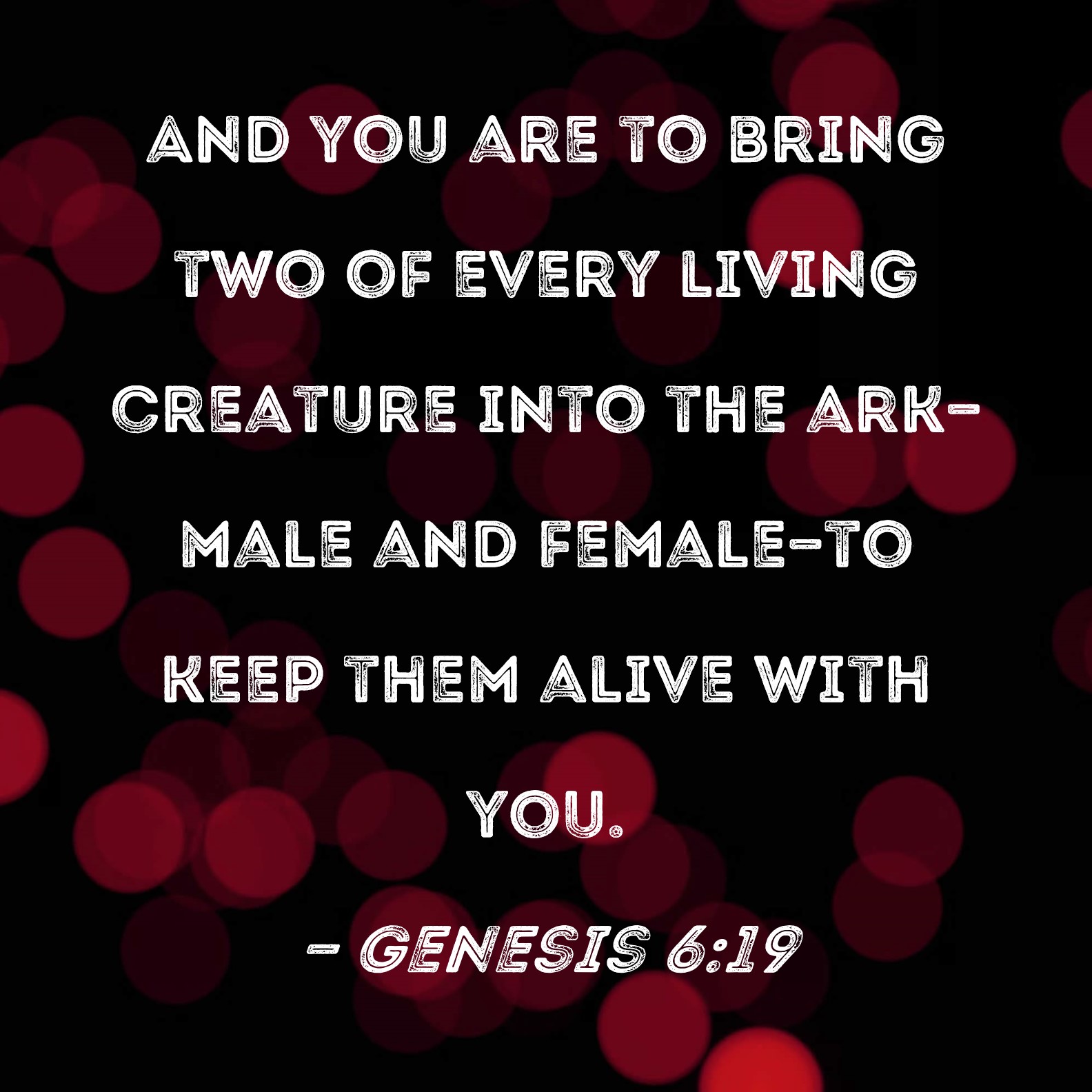 WBT:  And of every living thing of all flesh, two of every sort shalt thou bring into the ark, to keep them alive with thee: they shall be male and female.