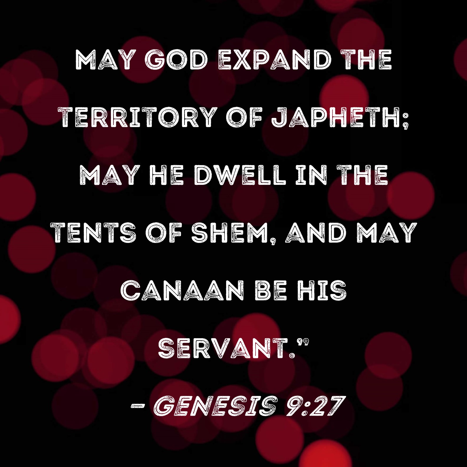 Genesis 9:27 May God expand the territory of Japheth; may he dwell in the tents of Shem, and may Canaan be his servant."