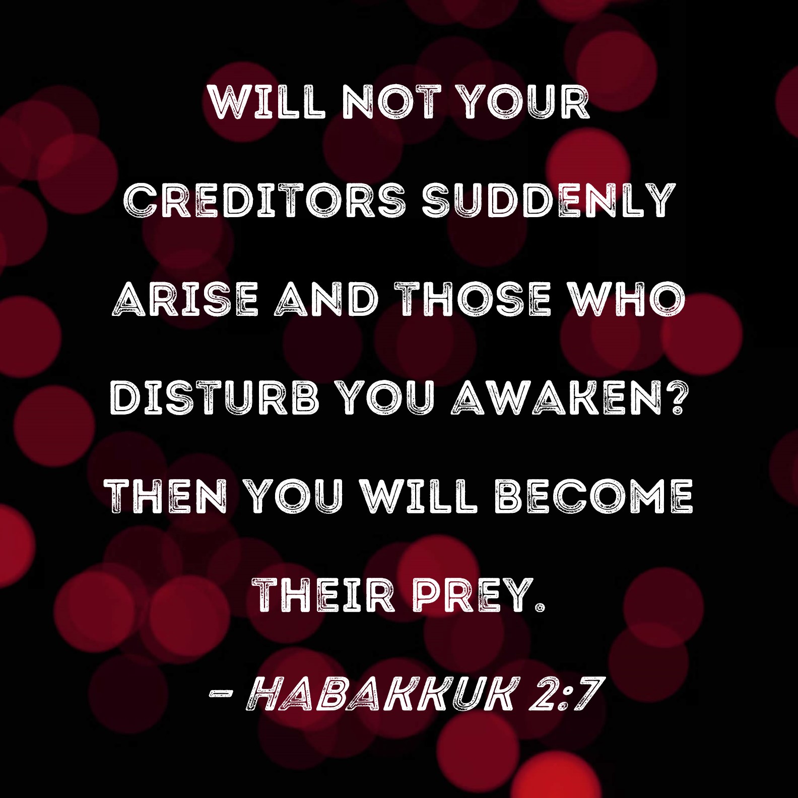 Habakkuk 2:7 Will not your creditors suddenly arise and those who disturb you awaken? Then you will become their prey.