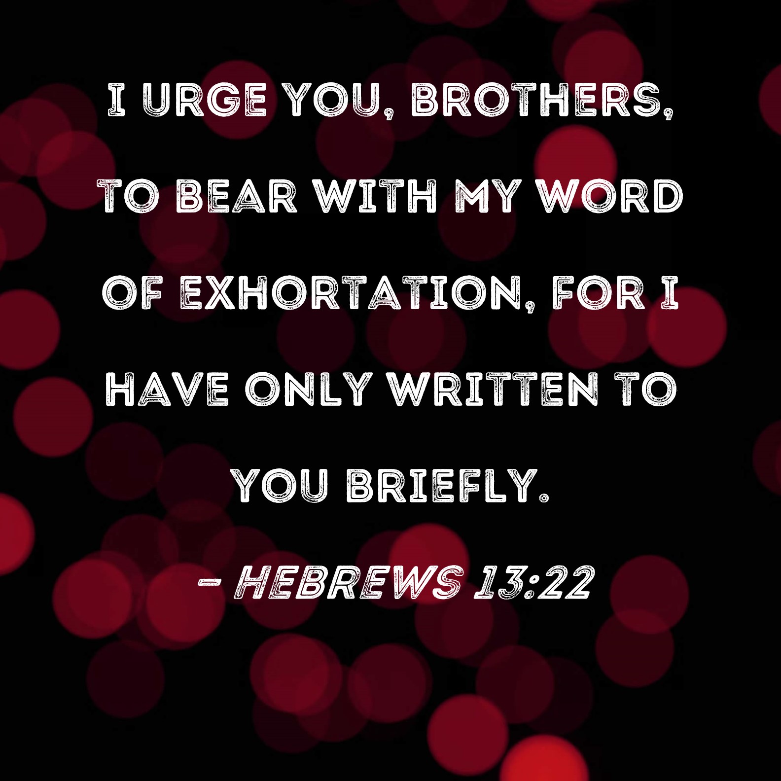 Hebrews 13:22 I urge you, brothers, to bear with my word of exhortation, for I have only written to you briefly.
