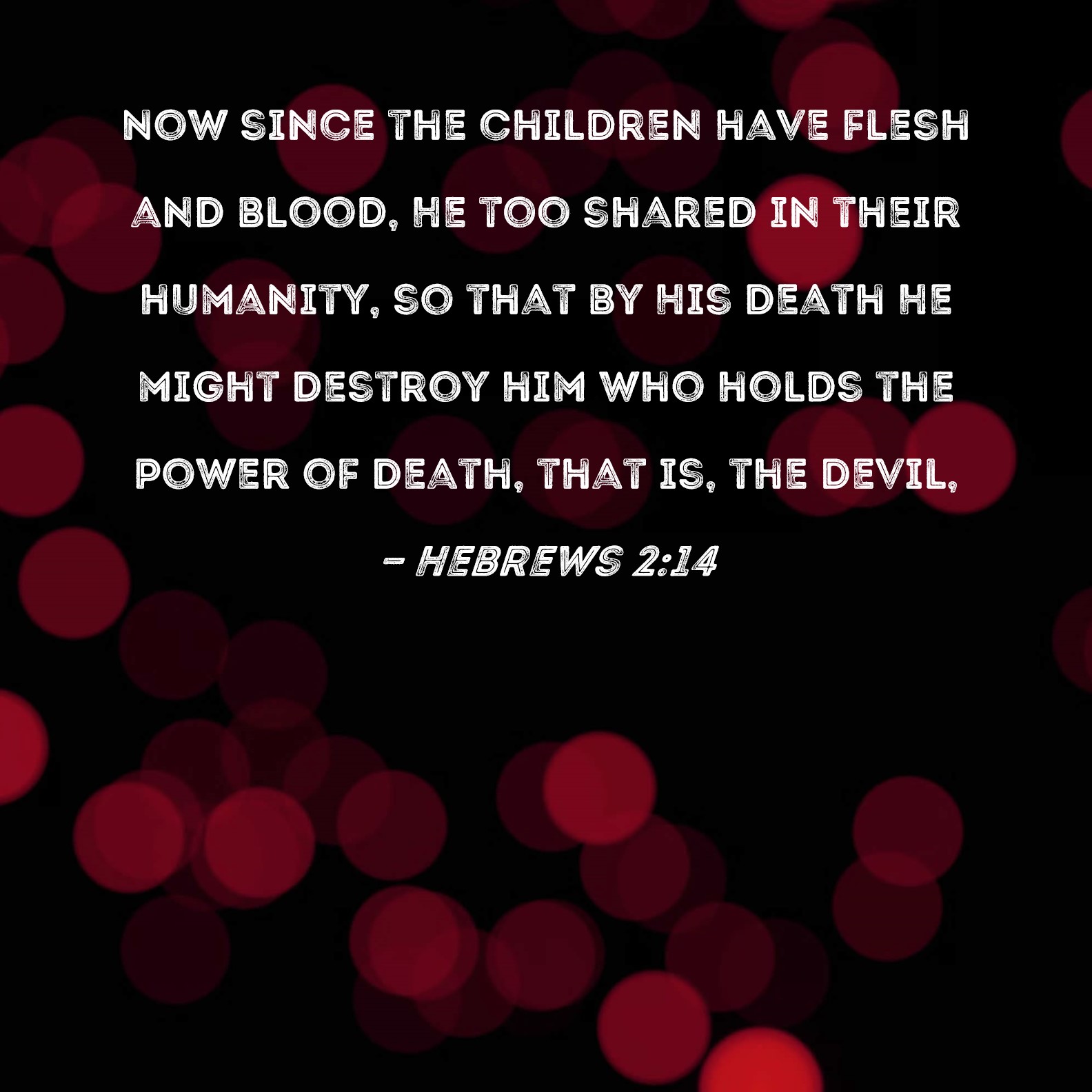 Hebrews 2:14 Now since the children have flesh and blood, He too shared in their humanity, so that by His death He might destroy him who holds the power of death, that is, the devil,