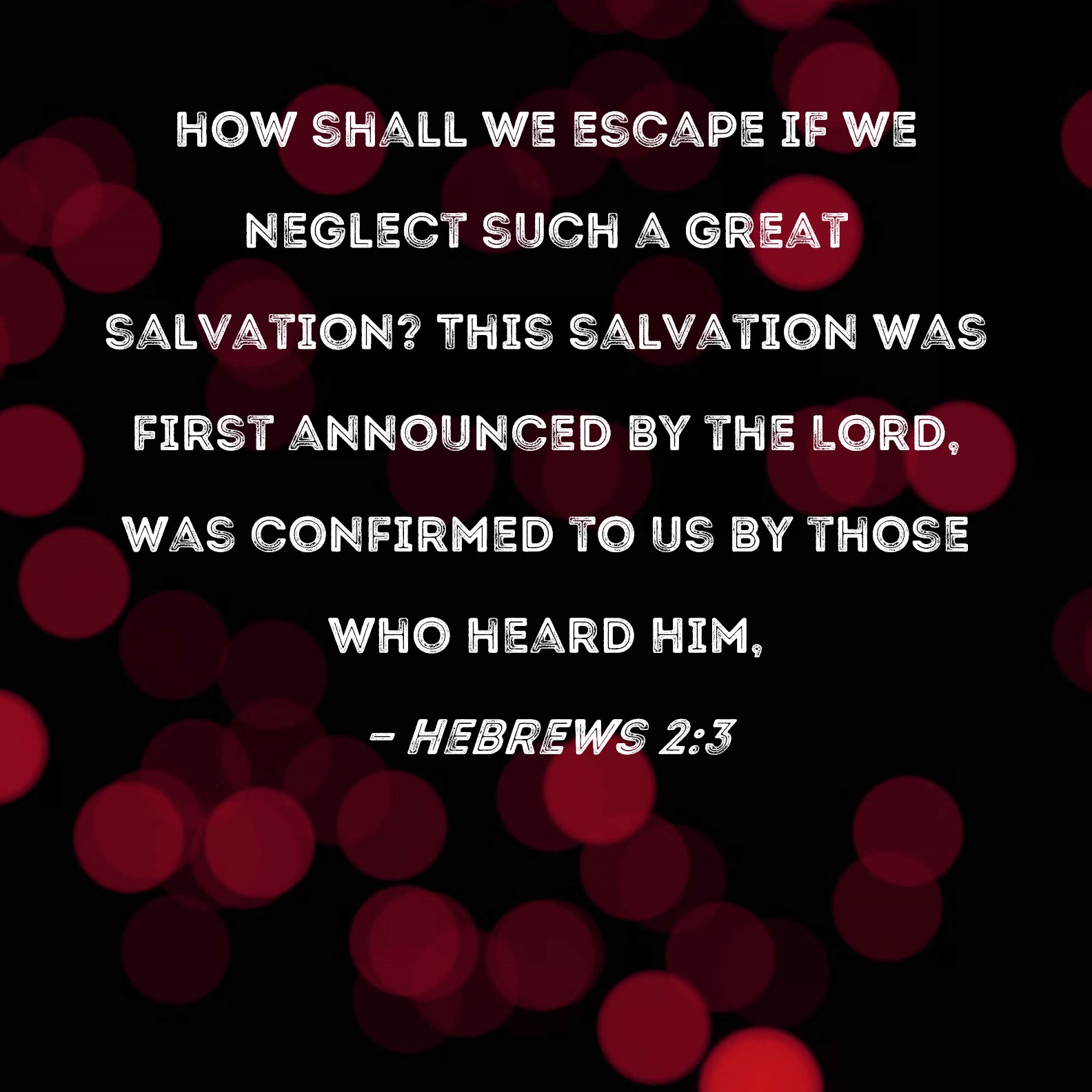Hebrews 2:3 how shall we escape if we neglect such a great salvation? This salvation was first announced by the Lord, was confirmed to us by those who heard Him,