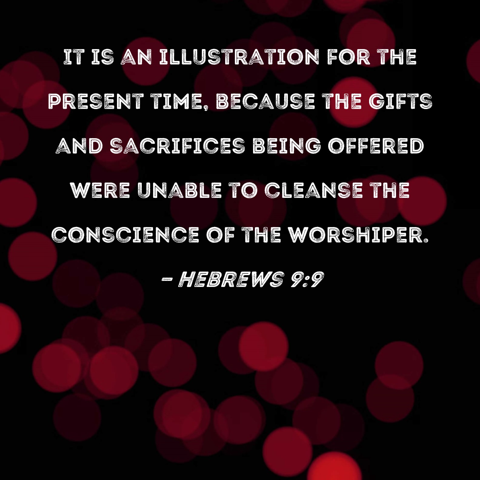 Hebrews 9:9 It is an illustration for the present time, because the gifts and sacrifices being offered were unable to cleanse the conscience of the worshiper.