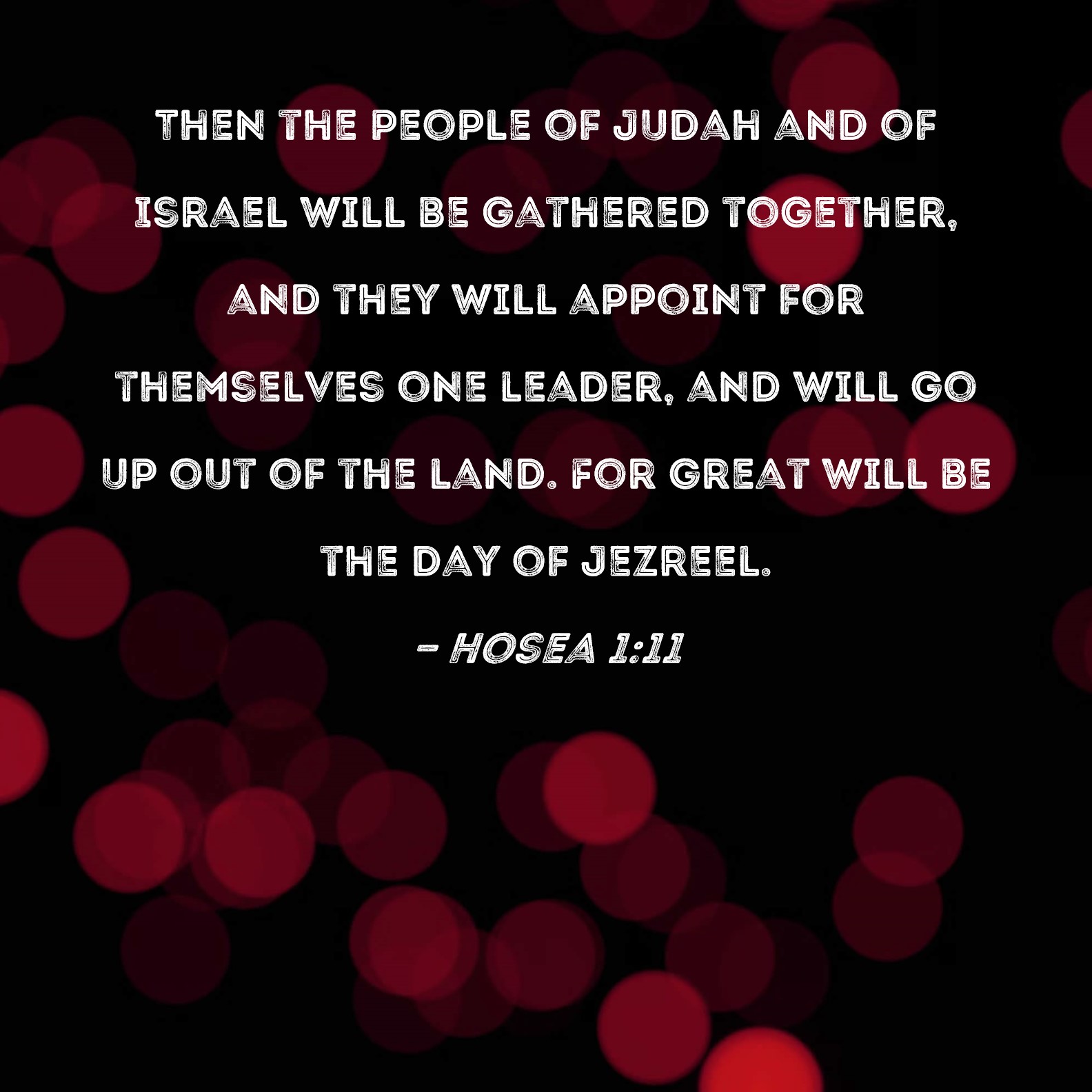Hosea 1:11 Then the people of Judah and of Israel will be gathered together, and they will appoint for themselves one leader, and will go up out of the land. For great will be the day of Jezreel.