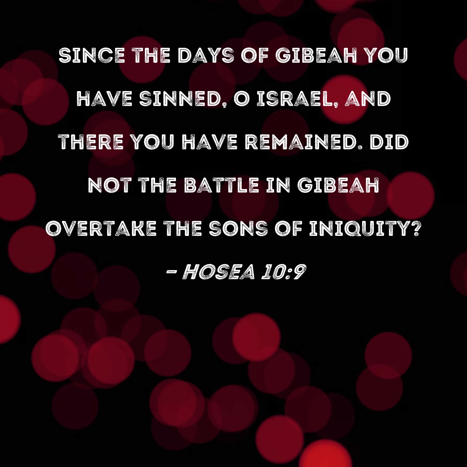 Hosea 10:9 Since the days of Gibeah you have sinned, O Israel, and there you have remained. Did not the battle in Gibeah overtake the sons of iniquity?