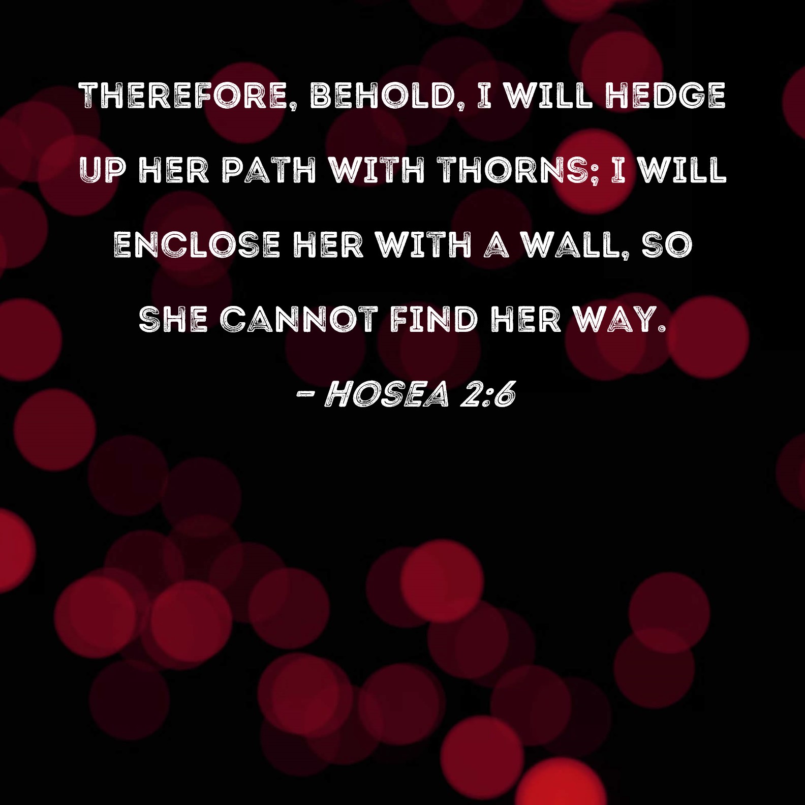 Hosea 2:6 Therefore, behold, I will hedge up her path with thorns; I will enclose her with a wall, so she cannot find her way.
