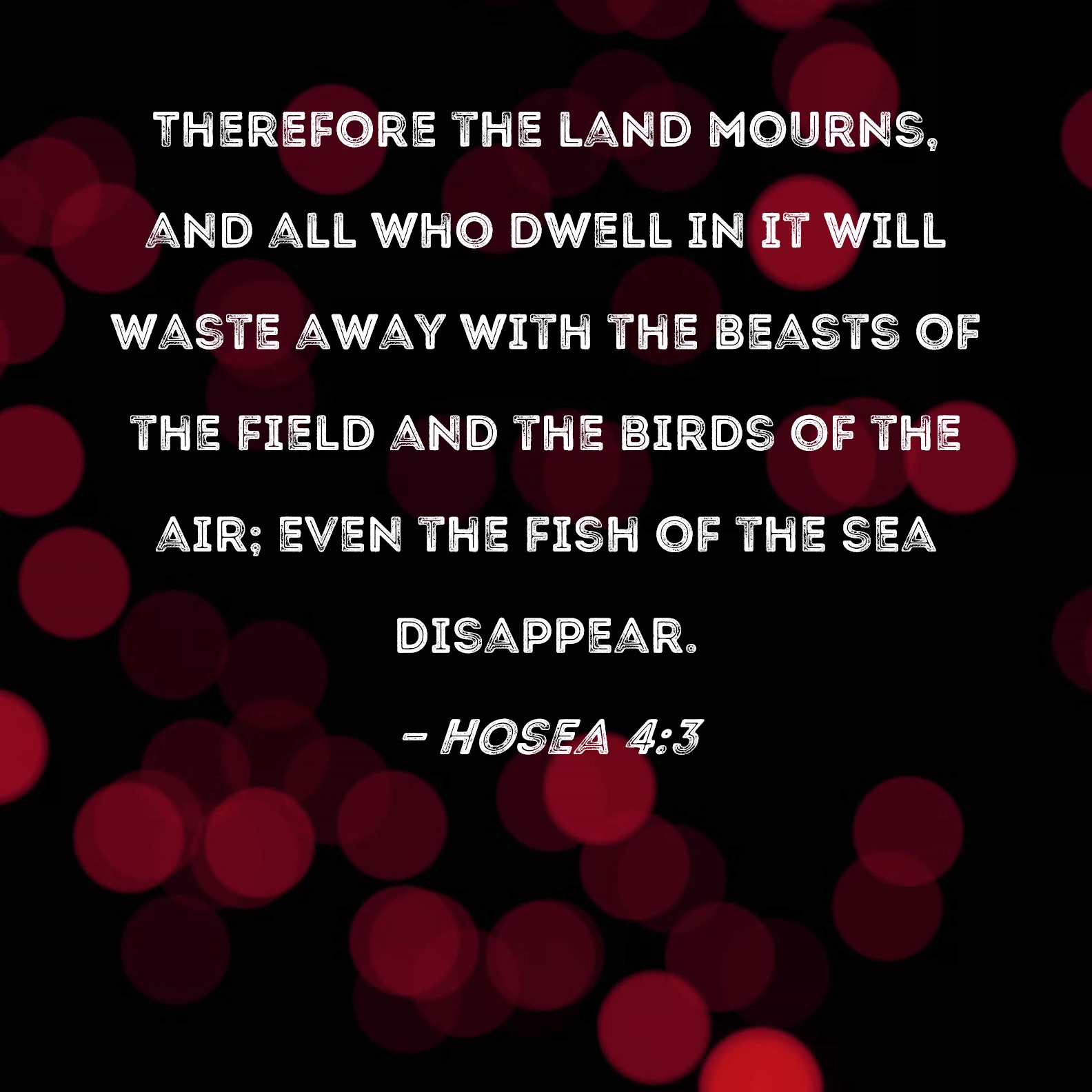 Hosea 4:3 Therefore the land mourns, and all who dwell in it will waste away with the beasts of the field and the birds of the air; even the fish of the sea disappear.