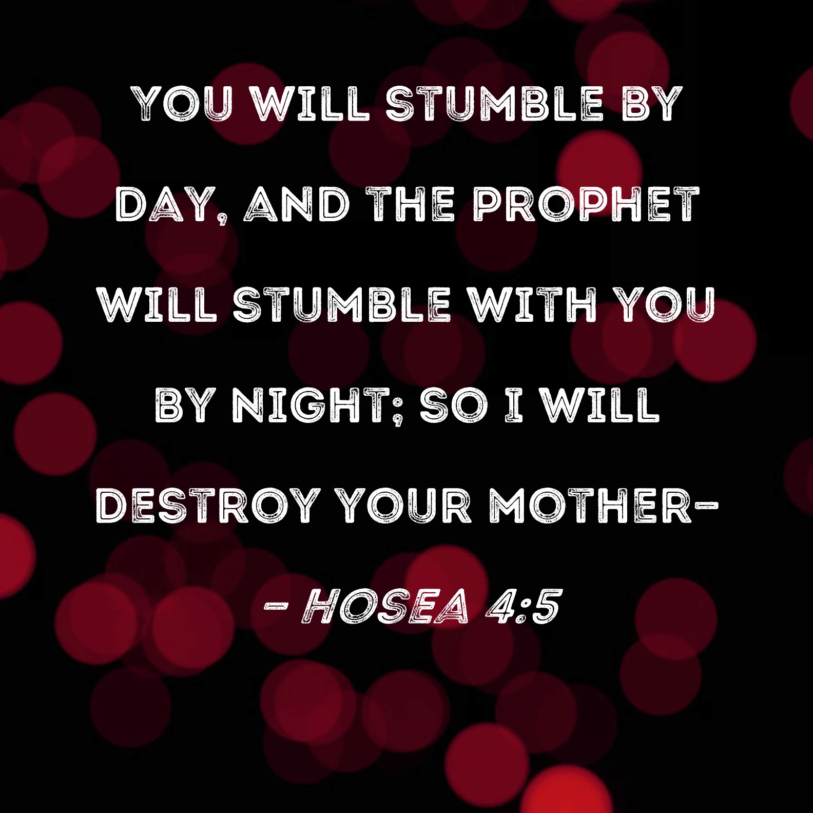 Hosea 4:5 You will stumble by day, and the prophet will stumble with you by night; so I will destroy your mother--
