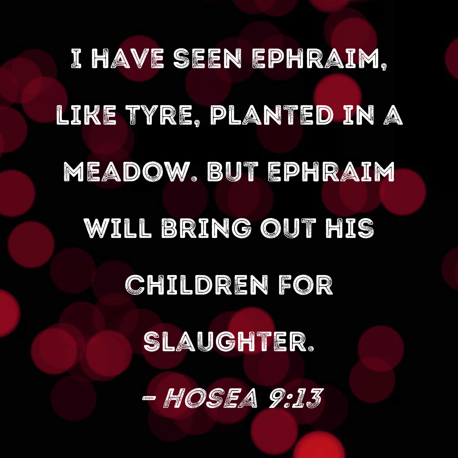 Hosea 9:13 I have seen Ephraim, like Tyre, planted in a meadow. But Ephraim will bring out his children for slaughter.
